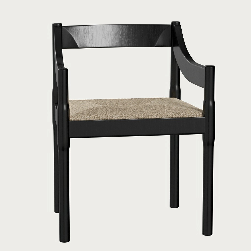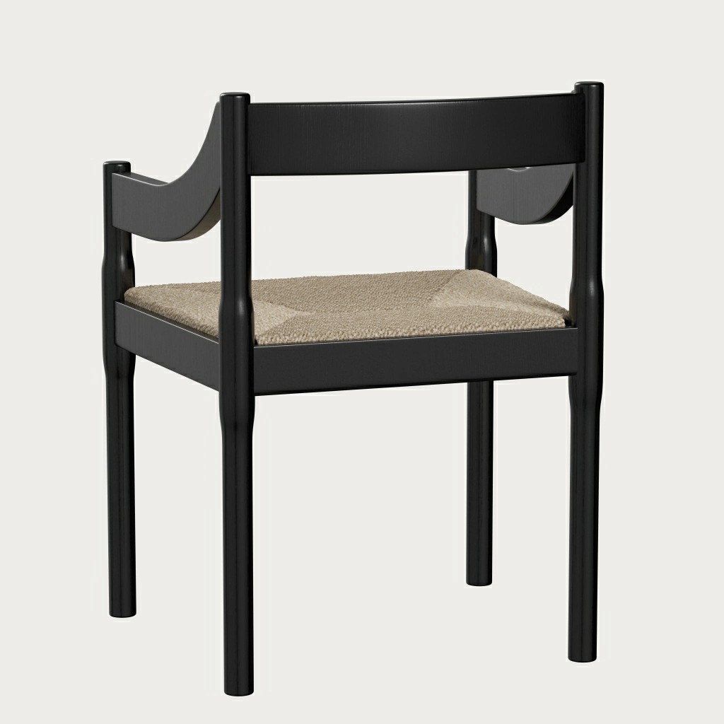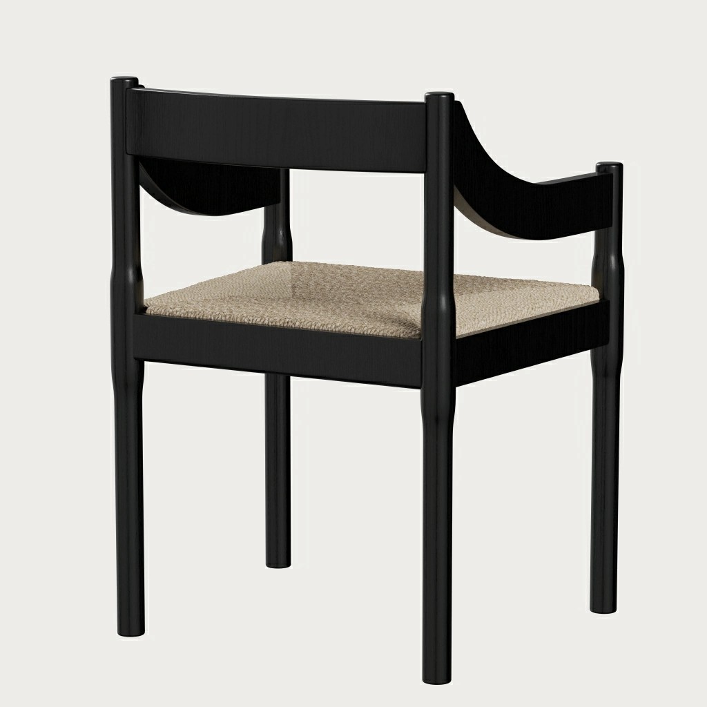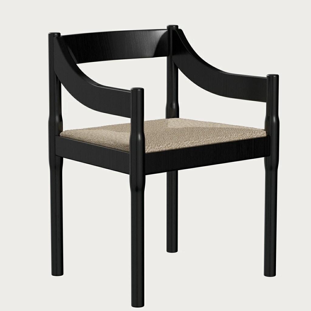 扶手椅是为了纪念维科·马吉斯特雷蒂,他于1959年为意大利的Carimate高尔夫俱乐部设计了原红色Carimate。细节使弗里茨·汉森的这个周年纪念版真正特别。旗线座椅的灵感来自原始的稻草座椅,尊重原始美学,而不会冒与天然稻草相关的有机腐烂的风险。弗里茨·汉森曾用欧洲通用无转基因亚麻作为旗线——110米手工编织,打造出美丽、有机的座椅。座椅高度和靠背设计进行了小的更改,以获得舒适性。椅子有红色和黑色漆,以纪念早期版本的设计。