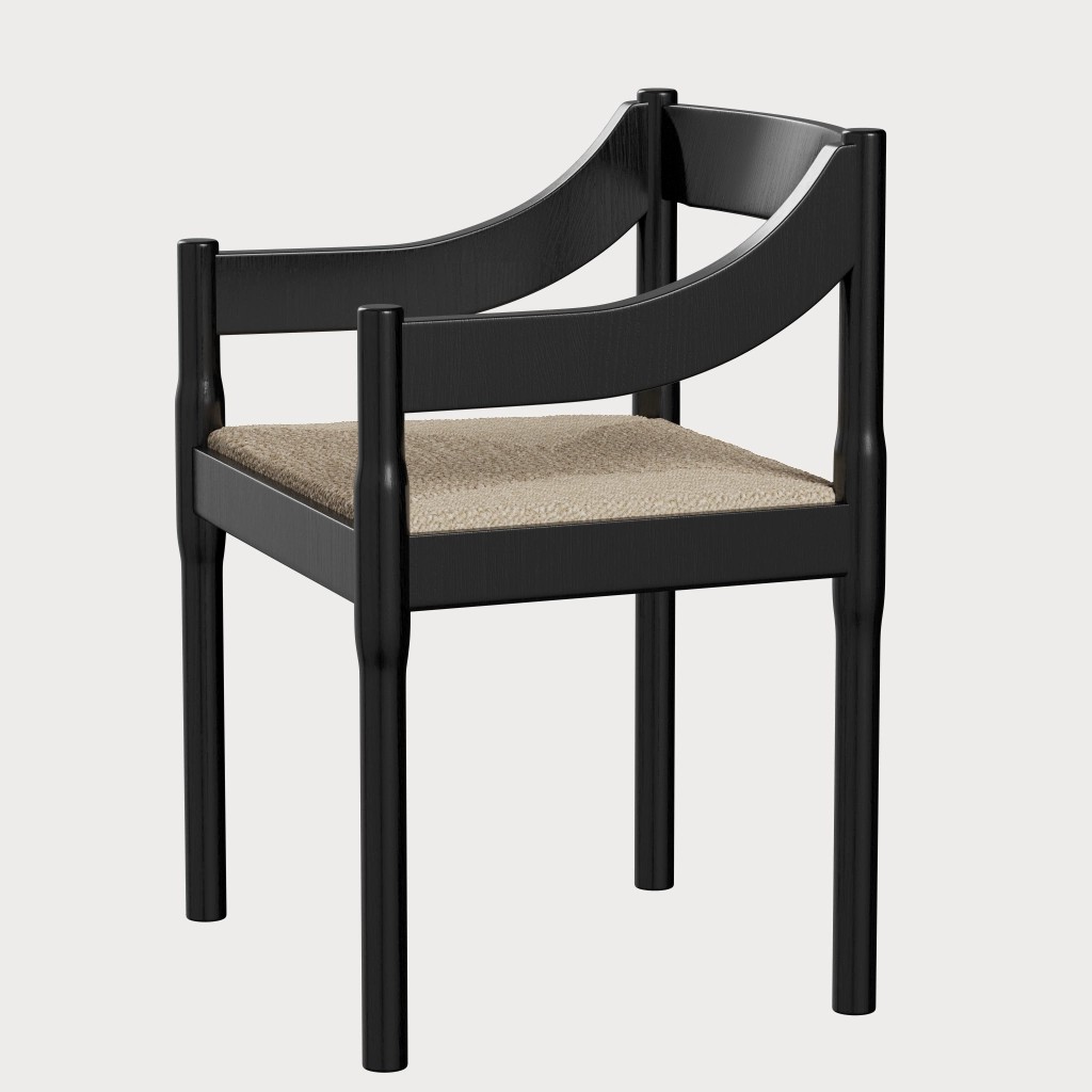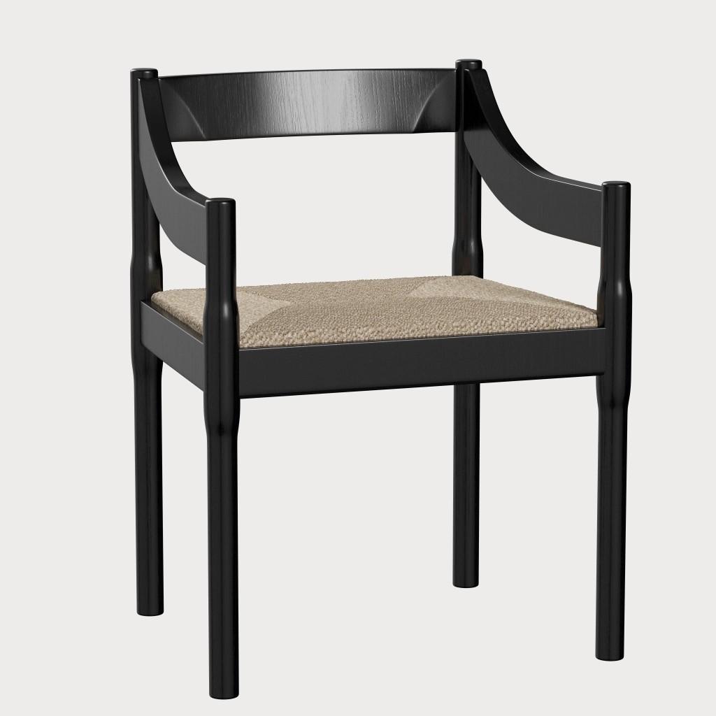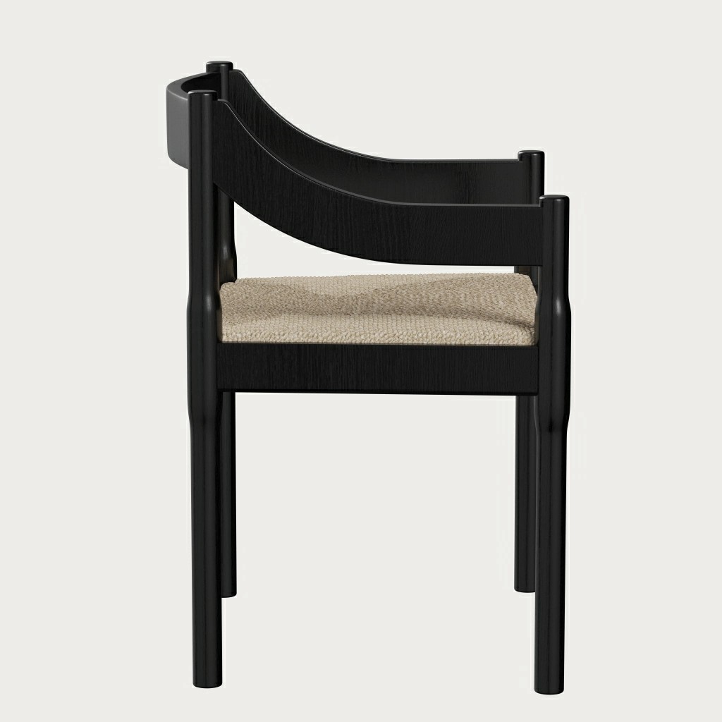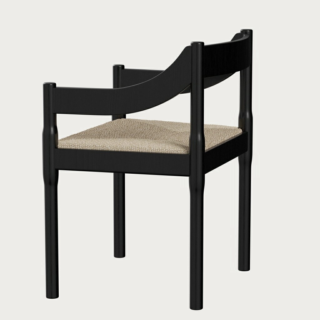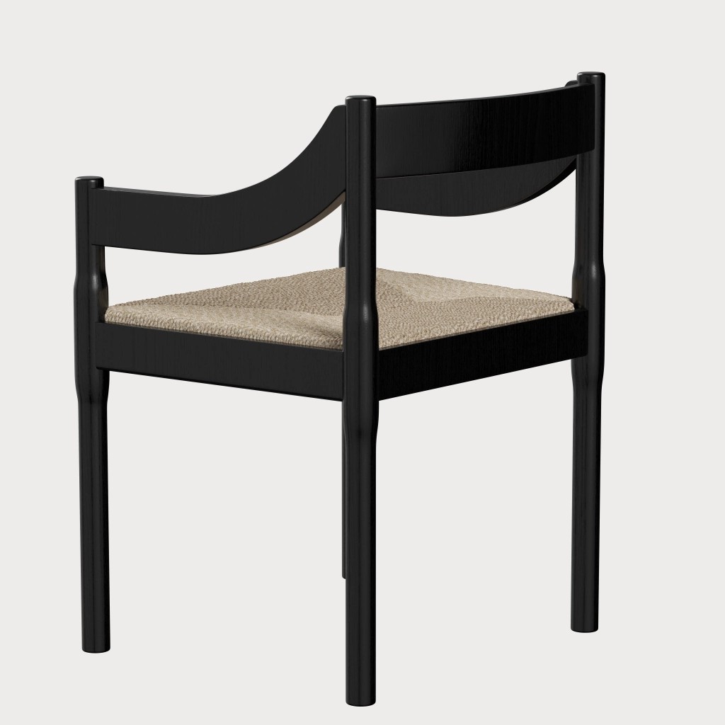 扶手椅是为了纪念维科·马吉斯特雷蒂,他于1959年为意大利的Carimate高尔夫俱乐部设计了原红色Carimate。细节使弗里茨·汉森的这个周年纪念版真正特别。旗线座椅的灵感来自原始的稻草座椅,尊重原始美学,而不会冒与天然稻草相关的有机腐烂的风险。弗里茨·汉森曾用欧洲通用无转基因亚麻作为旗线——110米手工编织,打造出美丽、有机的座椅。座椅高度和靠背设计进行了小的更改,以获得舒适性。椅子有红色和黑色漆,以纪念早期版本的设计。