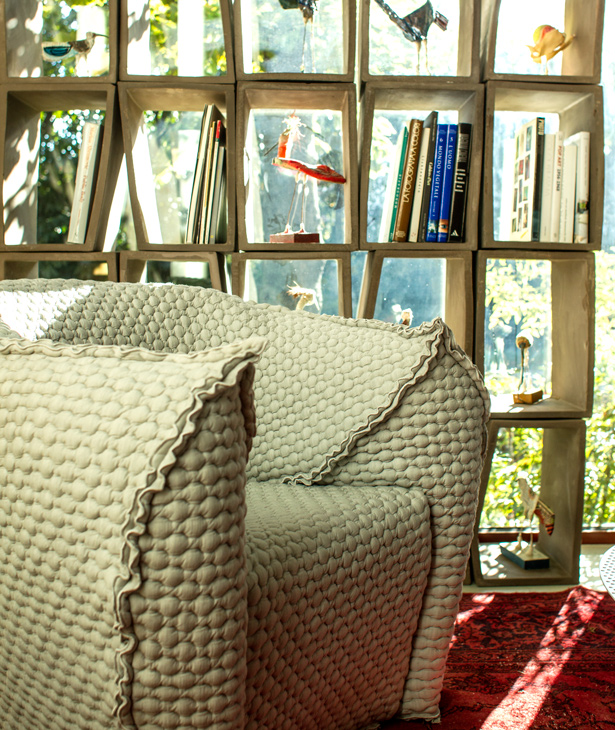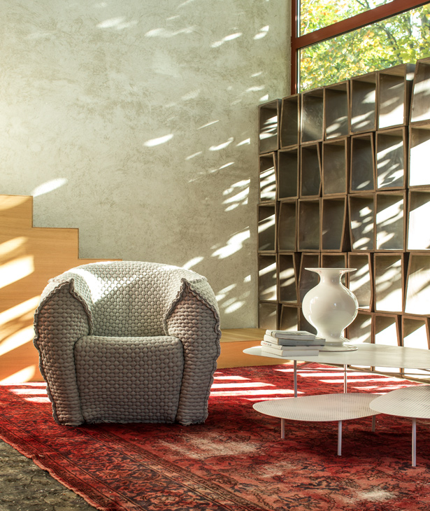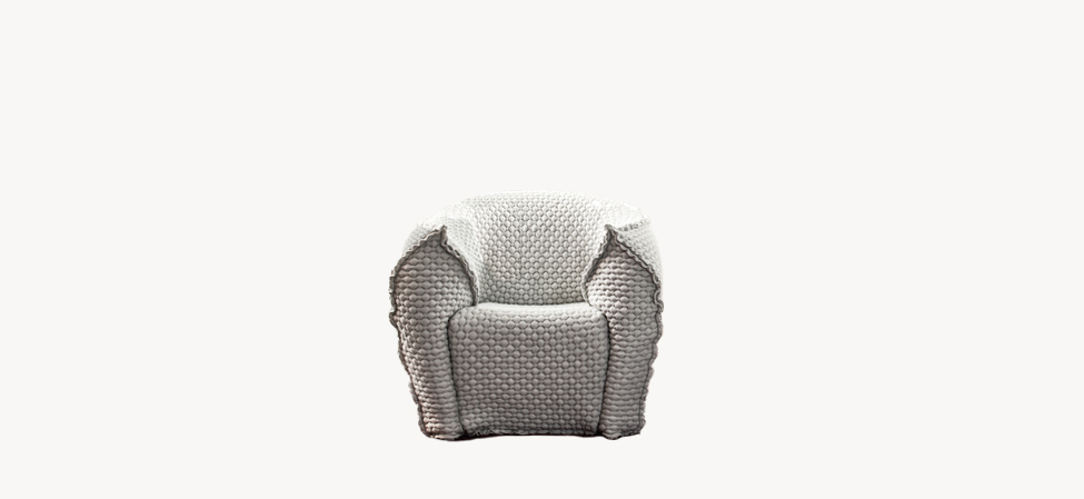 名称,材料,接缝,浮雕,柔软,厚度,颜色是传达扶手椅的灵魂的信息,它设法给的身体和情感满足感。潘娜椅子在有人坐下的那一刻就栩栩到生机:柔软、舒适,其包裹的形状适应使用它的人的身体,拥抱它。研究是在面对材料。面料的设计就像是穿一件衣服,穿上并粘在身上。最初设计为它的功能,它被设计师重新解释为诗意的键,作为一件衣服穿,柔软和紧,作为一个接触表面。