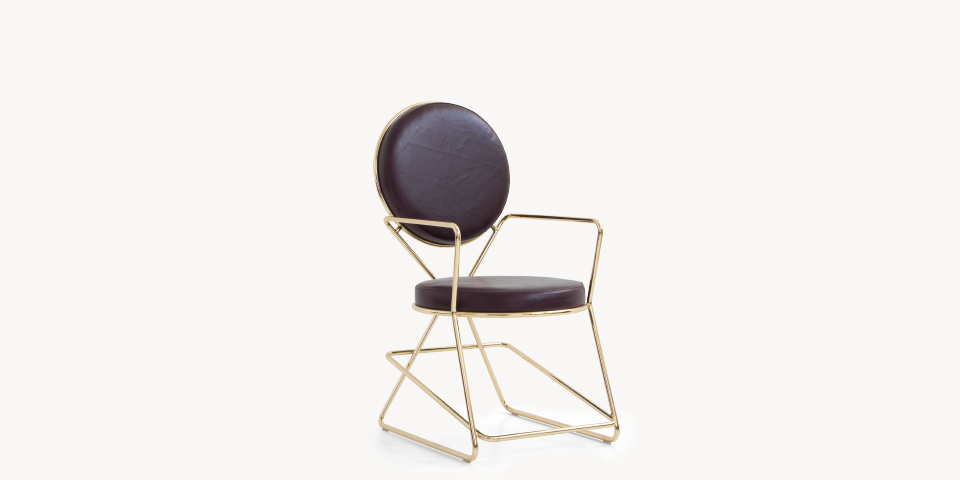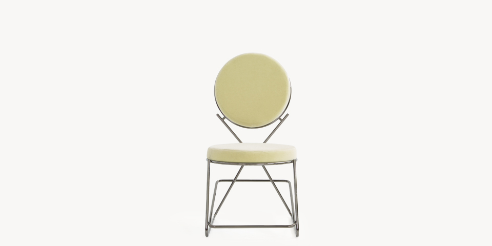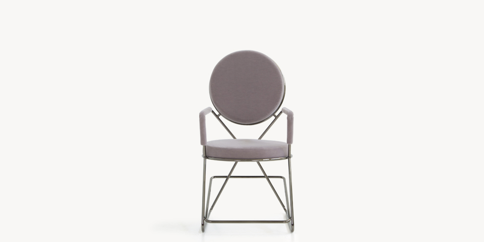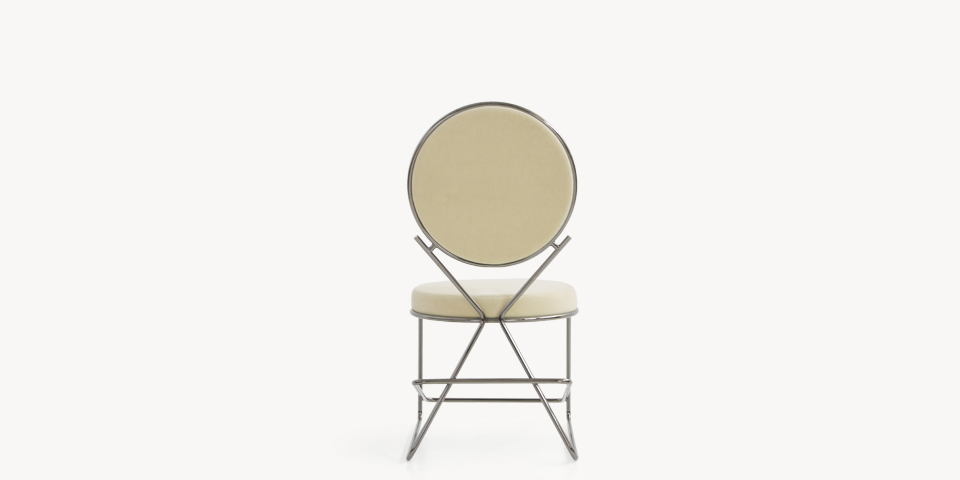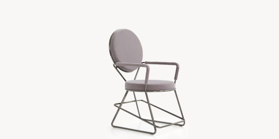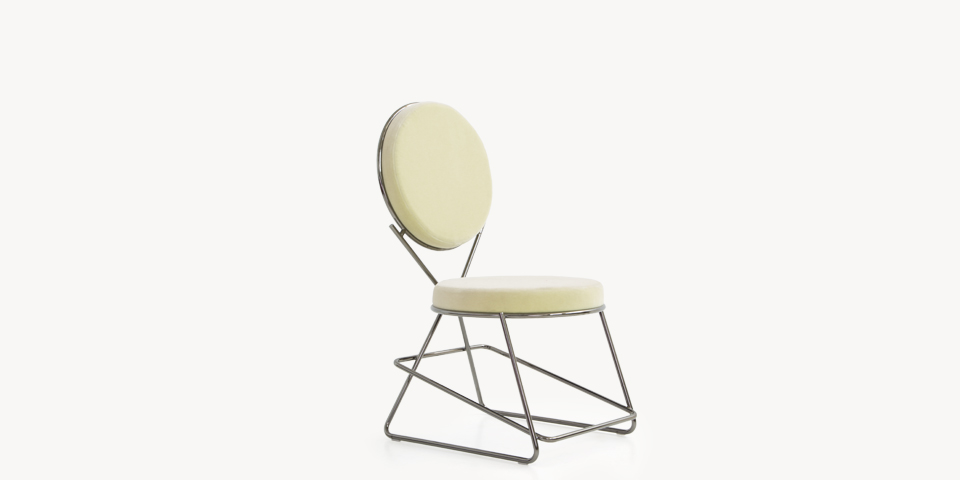 两个圆圈,两个基本模块嫁接成装饰灵感的构造几何,公开传达最大化正规化的倾向。这是工业生产最高质量的前奏,优雅的产量经济表达的可能性,由铬钢管结构提供,拒绝该项目在一个完整的一系列座位。因此,一把椅子和一张凳子诞生了,有臂章,没有扶手,上面加了一张双座沙发,这是由阶级和好品味决定的精致的正式进化。它是回归秩序,同时过渡到豪华和合成的语言。