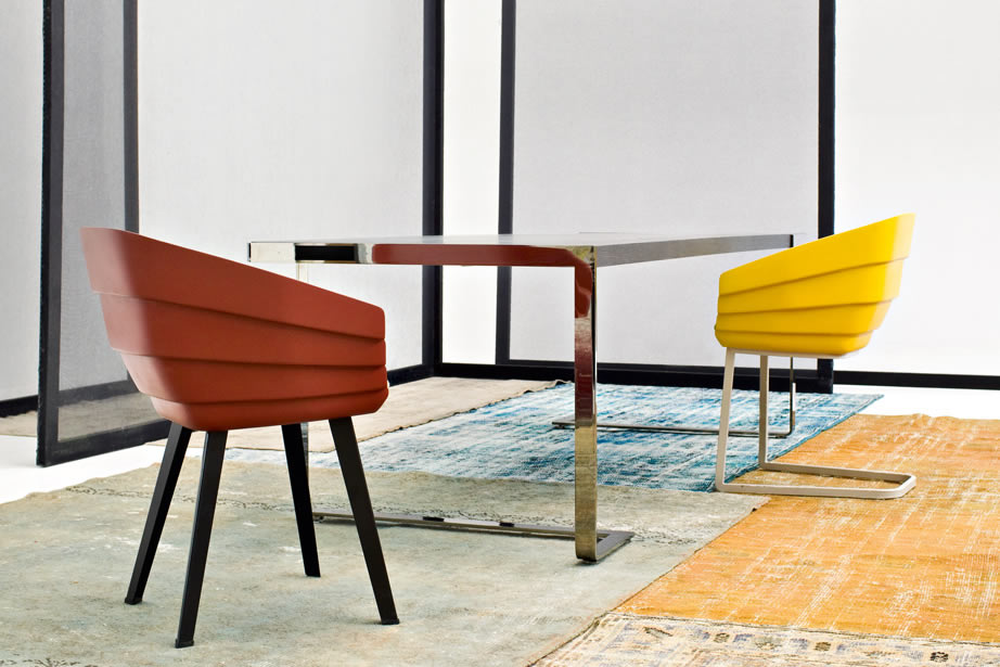 外壳在结构整体聚氨酯和悬臂基漆钢。悬臂椅可堆叠多达 4 个单元。