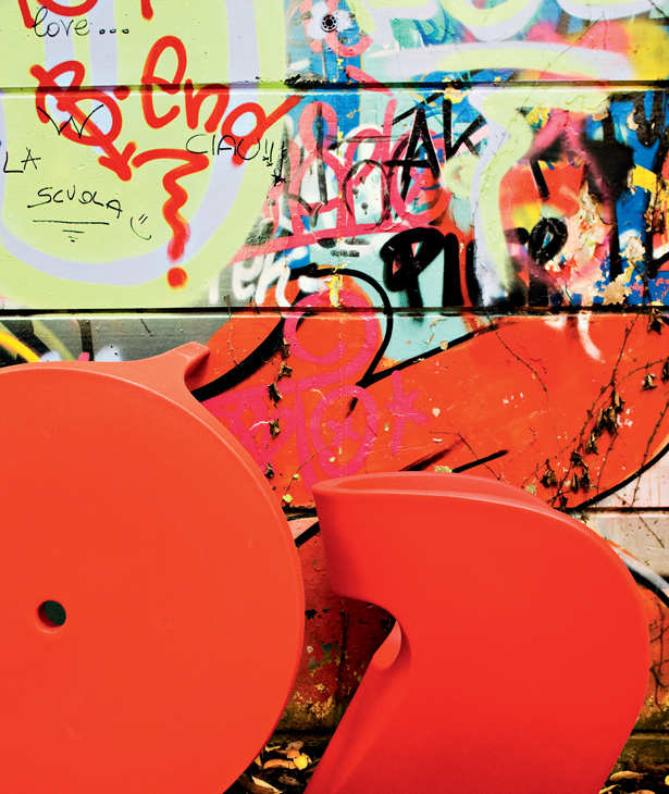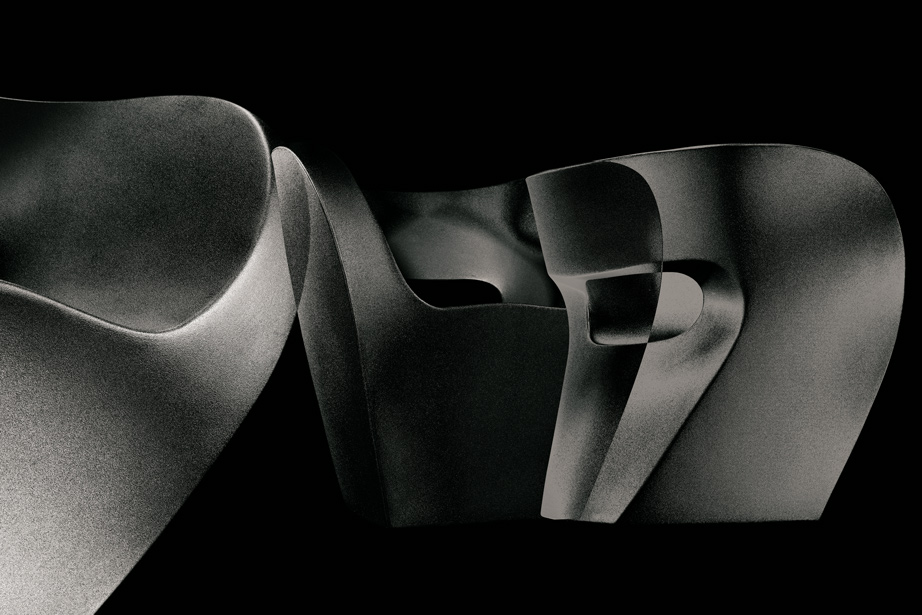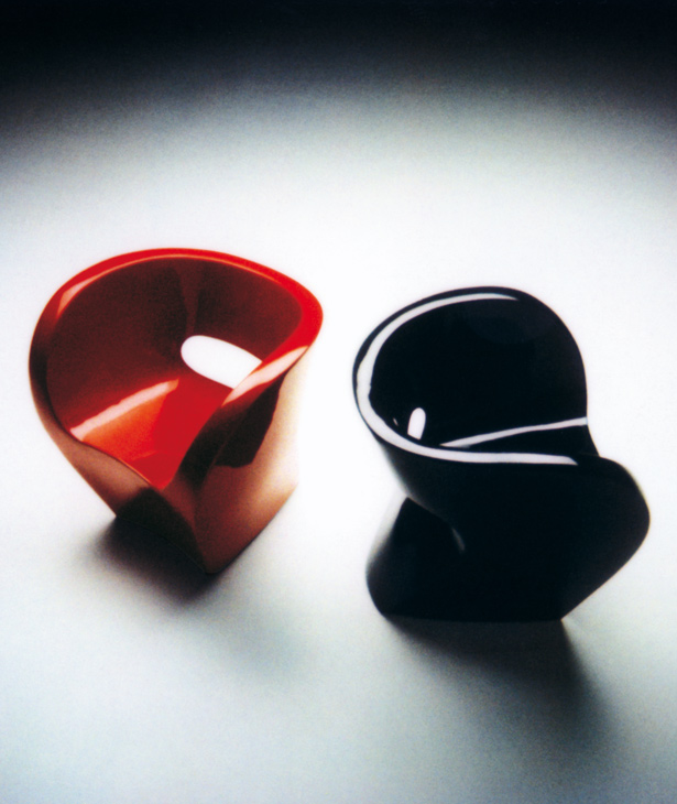连续流动的曲线,连续绘制的图形图像,无需将铅笔从纸张中分离出来。最初是一个"甜甜圈",它成为一个雕塑的想法:粉碎,重塑,一个具有讽刺意味的观点,超越了工业设计的特殊方法。然后对象:在内部结构上,在树脂玻璃和玻璃纤维中,填充物和量身定做的连衣裙揭示了项目技术与表现价值之间的巧合敏感但坚固的线条,从不中断,表面和形式之间、表皮和身体之间的严格对应。织物侵入空间增强和增强材料,而不会重叠流动,而不会中断它。