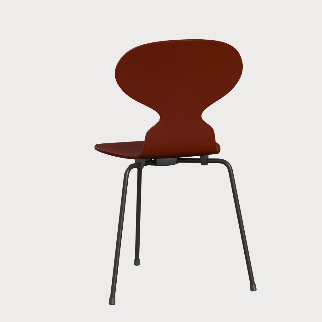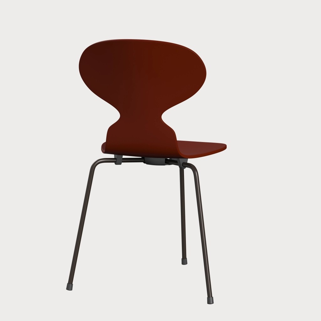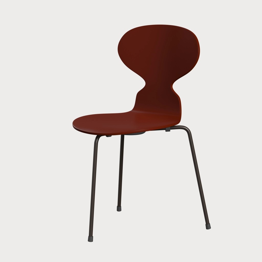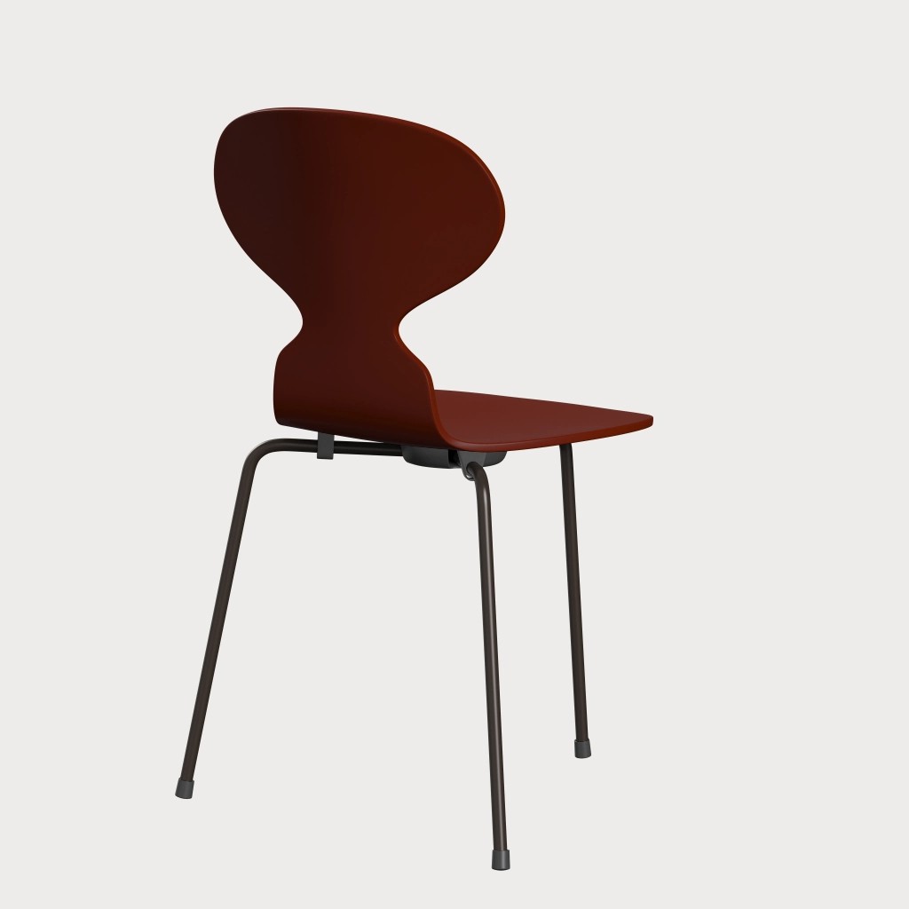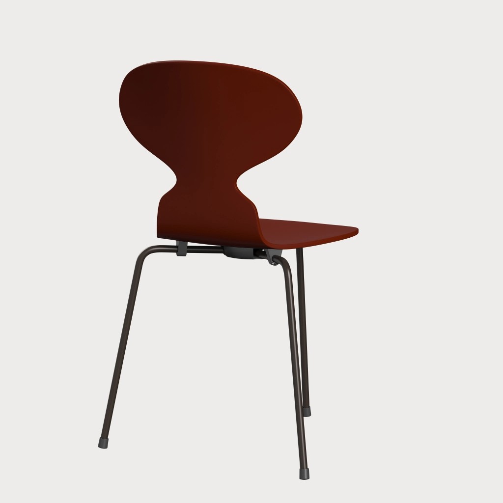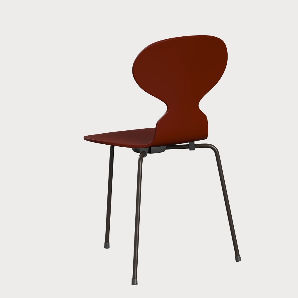 蚂蚁™椅子的视觉表达是细腻和巧妙的,很像乐器的曲线。这把椅子由阿恩·雅各布森于1952年设计,由九层压力模制贴面制成。其优雅的造型掩盖了其非凡的力量和舒适性。三条腿的蚂蚁的灵感来自于简单的农业凳子,这些凳子可以牢牢地站立在丹麦农舍不平坦的地板上。椅子精美地体现了雅各布森对原材料固有强度的理解,仅由两部分组成:组合座椅和靠背的形压胶合板和管状钢架。