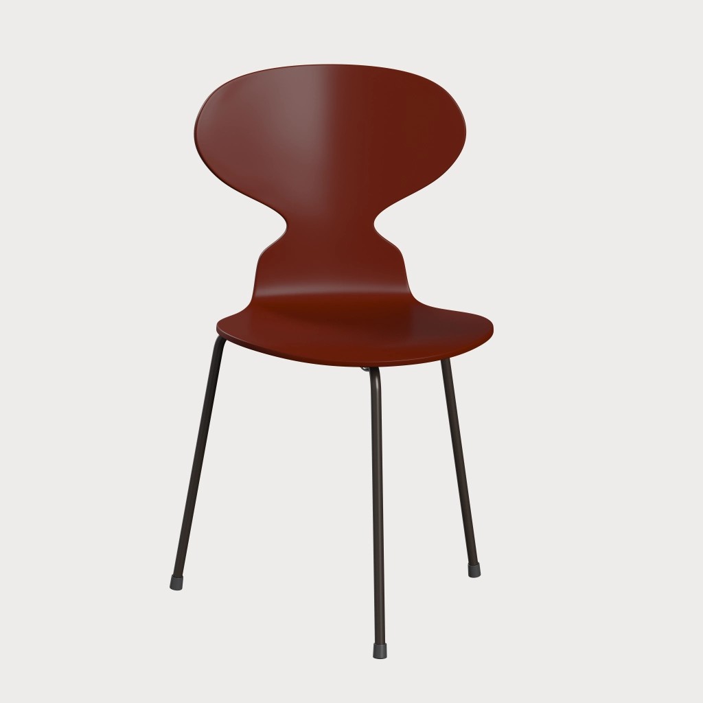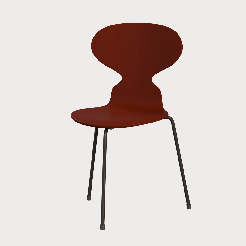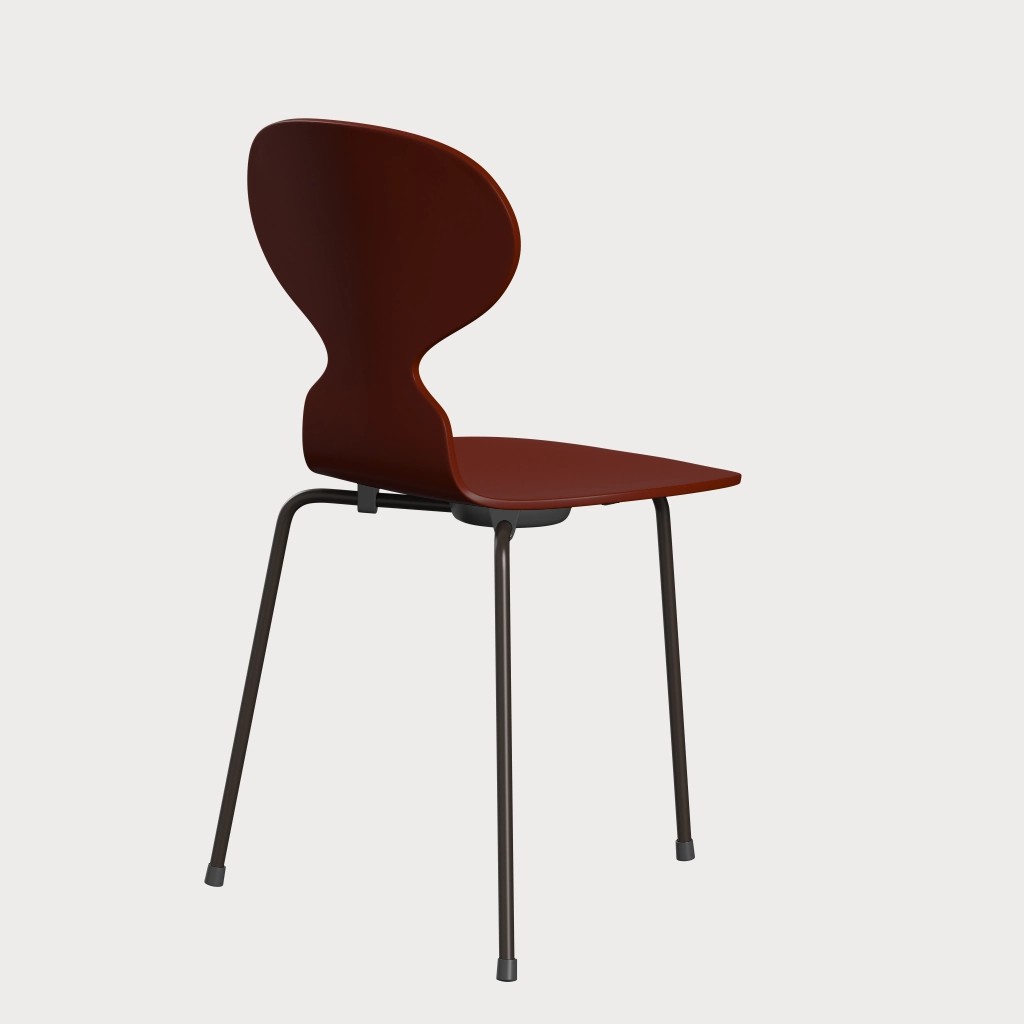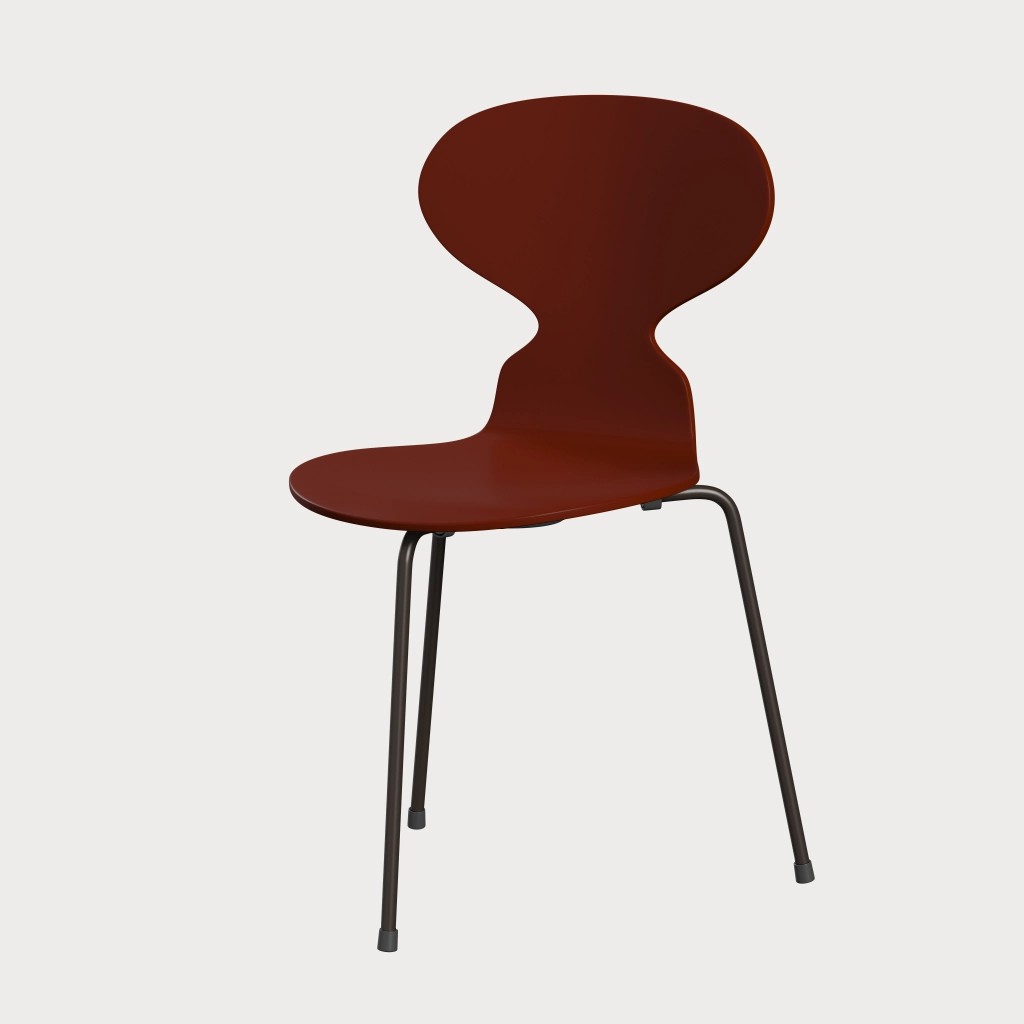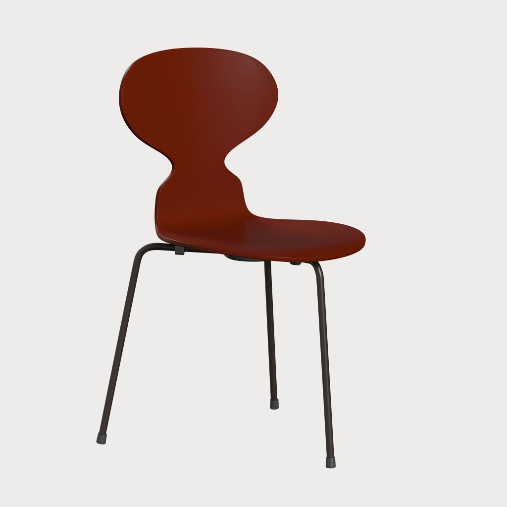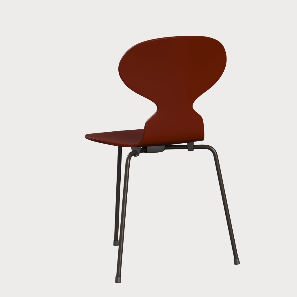 蚂蚁™椅子的视觉表达是细腻和巧妙的,很像乐器的曲线。这把椅子由阿恩·雅各布森于1952年设计,由九层压力模制贴面制成。其优雅的造型掩盖了其非凡的力量和舒适性。三条腿的蚂蚁的灵感来自于简单的农业凳子,这些凳子可以牢牢地站立在丹麦农舍不平坦的地板上。椅子精美地体现了雅各布森对原材料固有强度的理解,仅由两部分组成:组合座椅和靠背的形压胶合板和管状钢架。