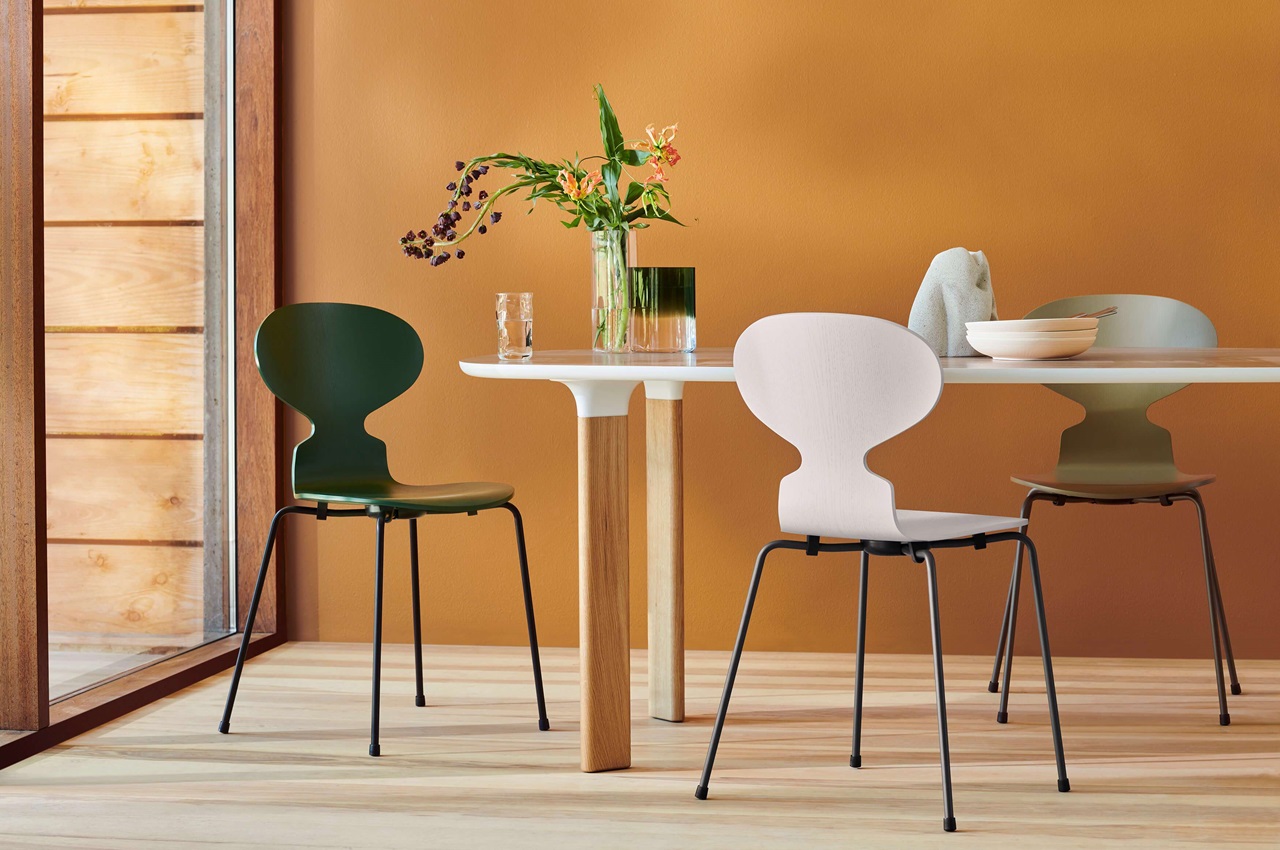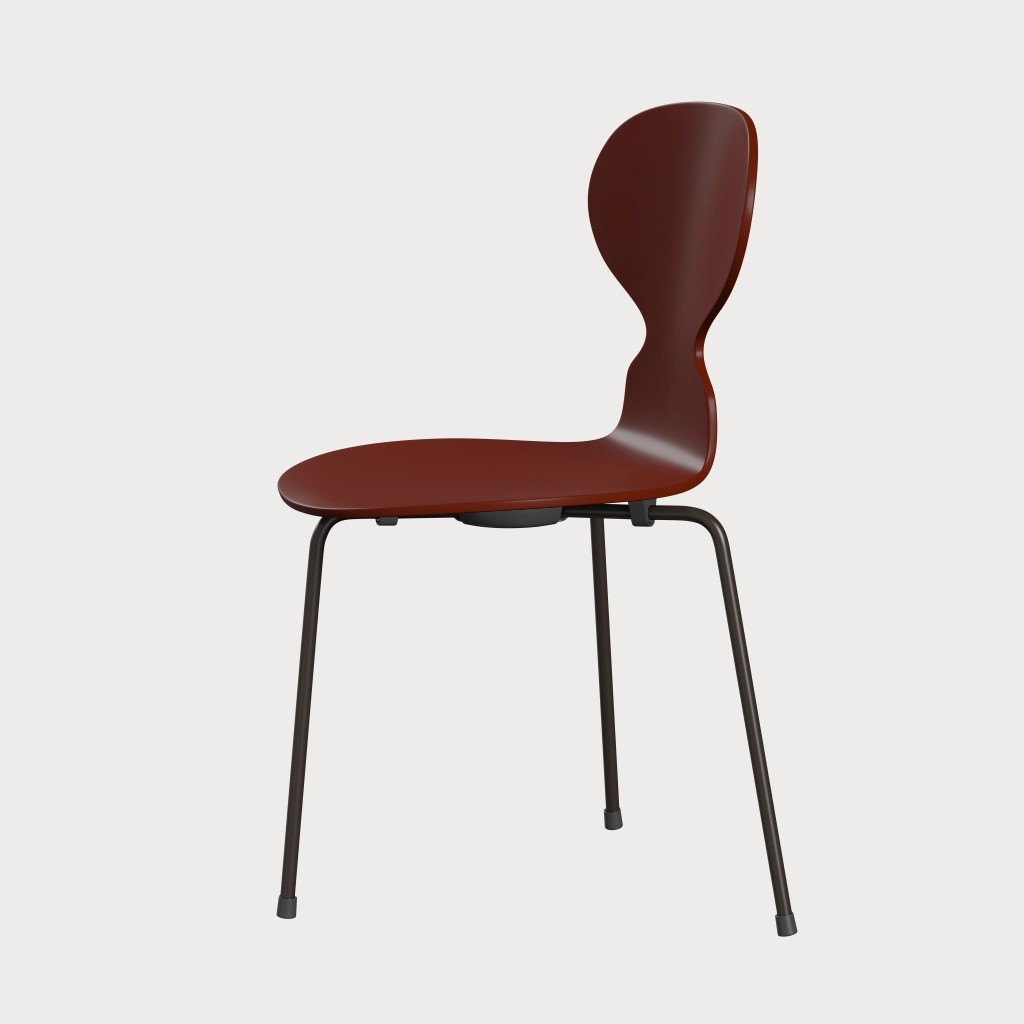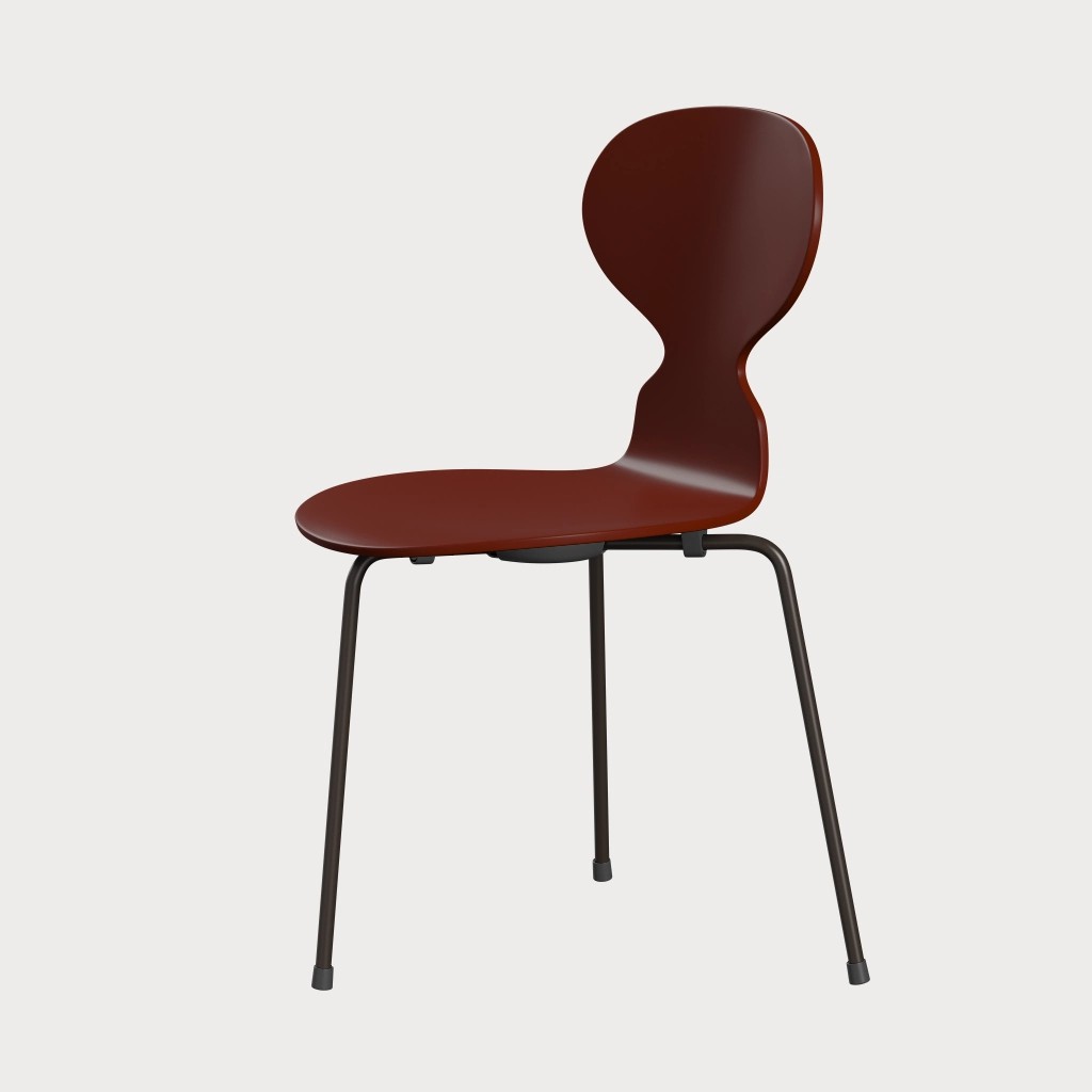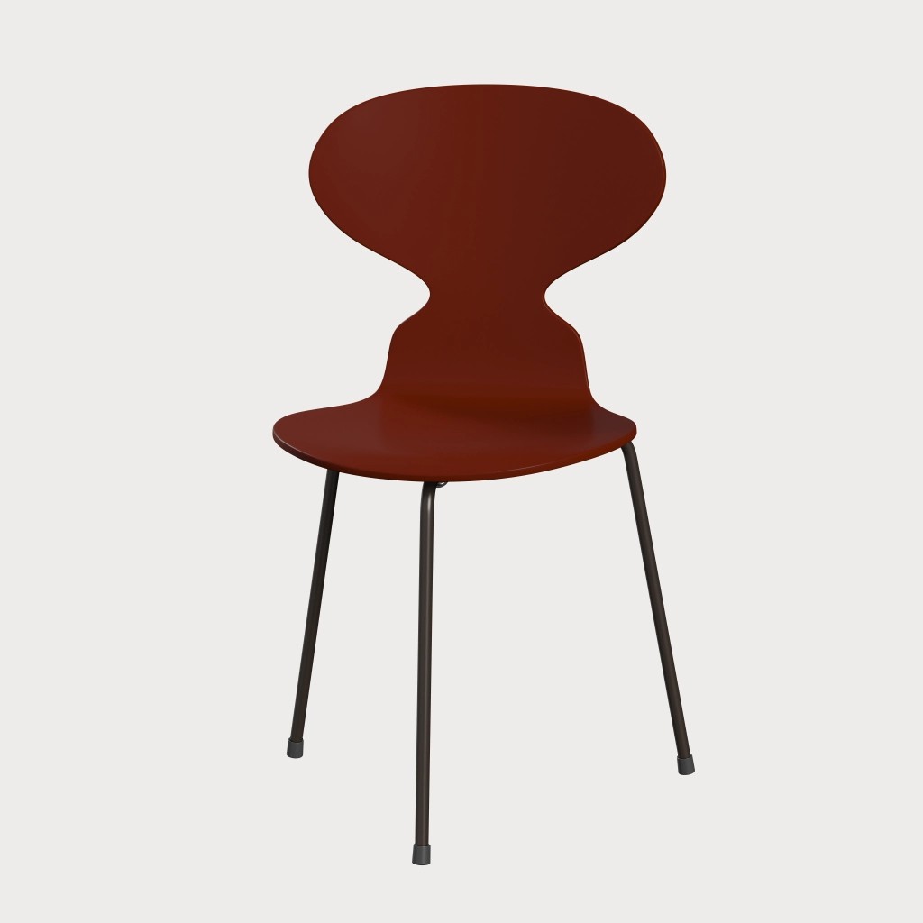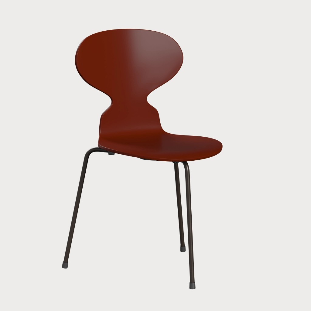 蚂蚁™椅子的视觉表达是细腻和巧妙的,很像乐器的曲线。这把椅子由阿恩·雅各布森于1952年设计,由九层压力模制贴面制成。其优雅的造型掩盖了其非凡的力量和舒适性。三条腿的蚂蚁的灵感来自于简单的农业凳子,这些凳子可以牢牢地站立在丹麦农舍不平坦的地板上。椅子精美地体现了雅各布森对原材料固有强度的理解,仅由两部分组成:组合座椅和靠背的形压胶合板和管状钢架。