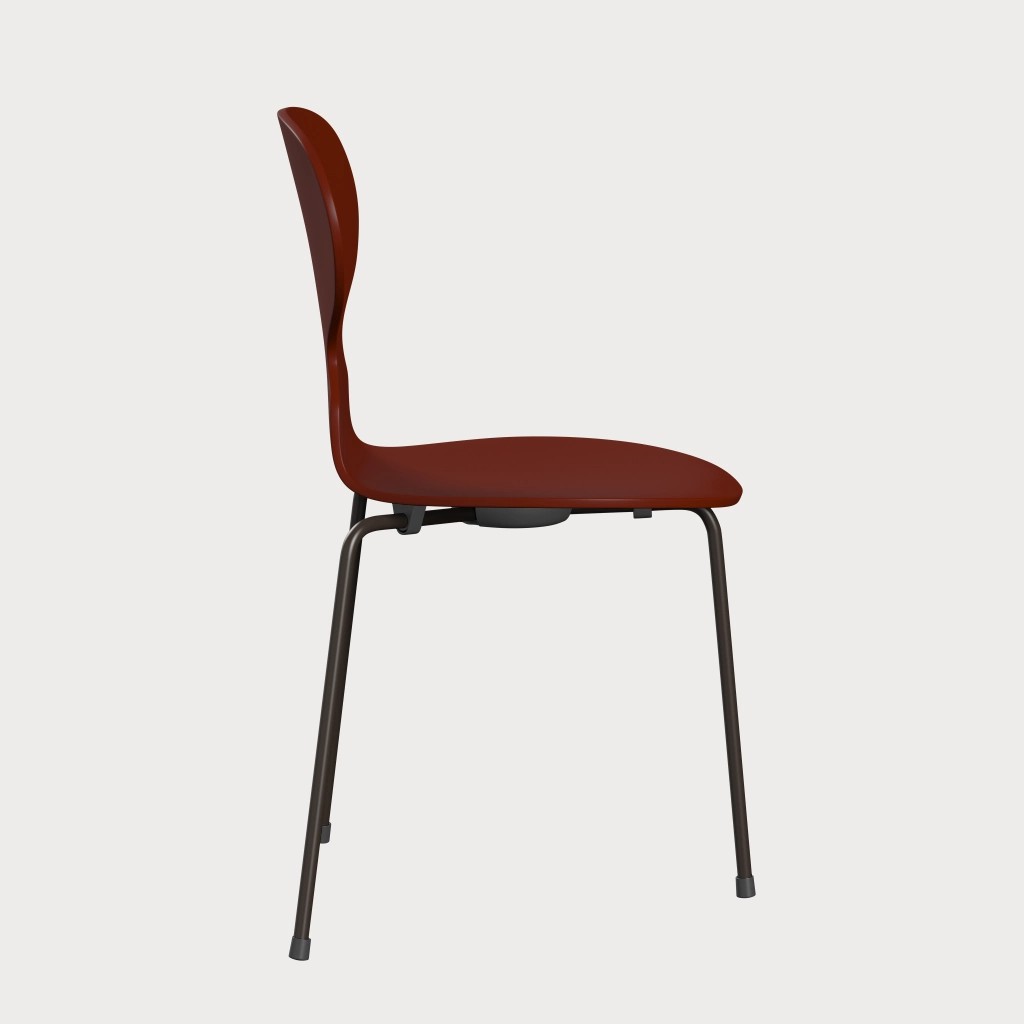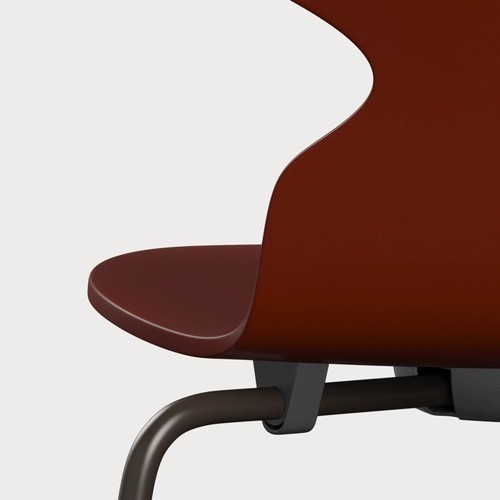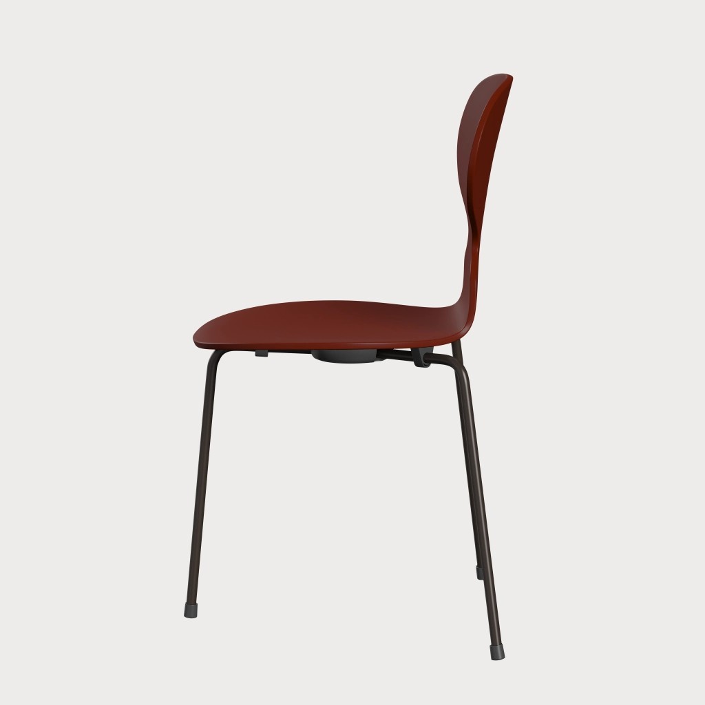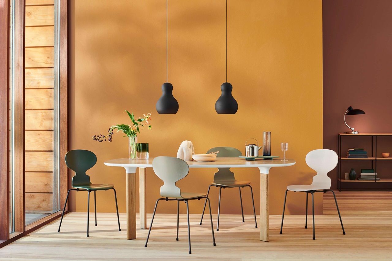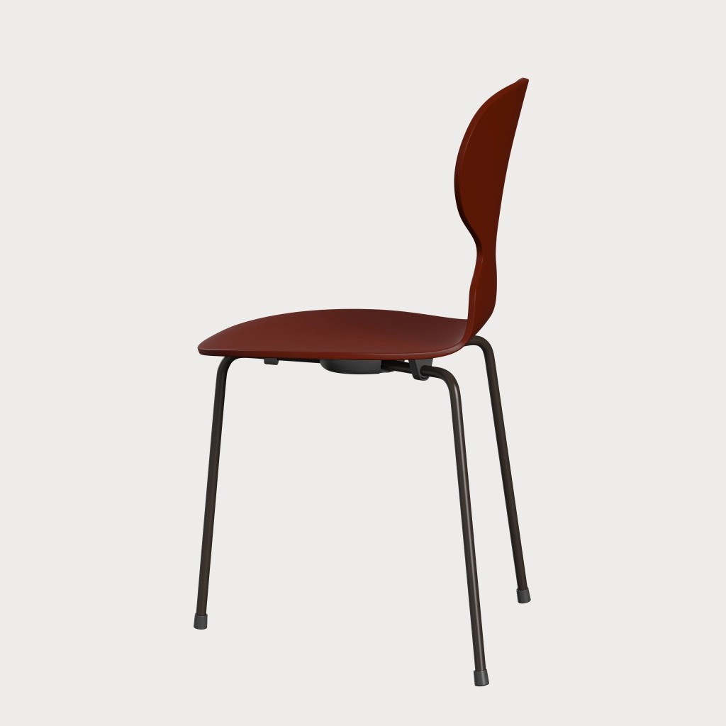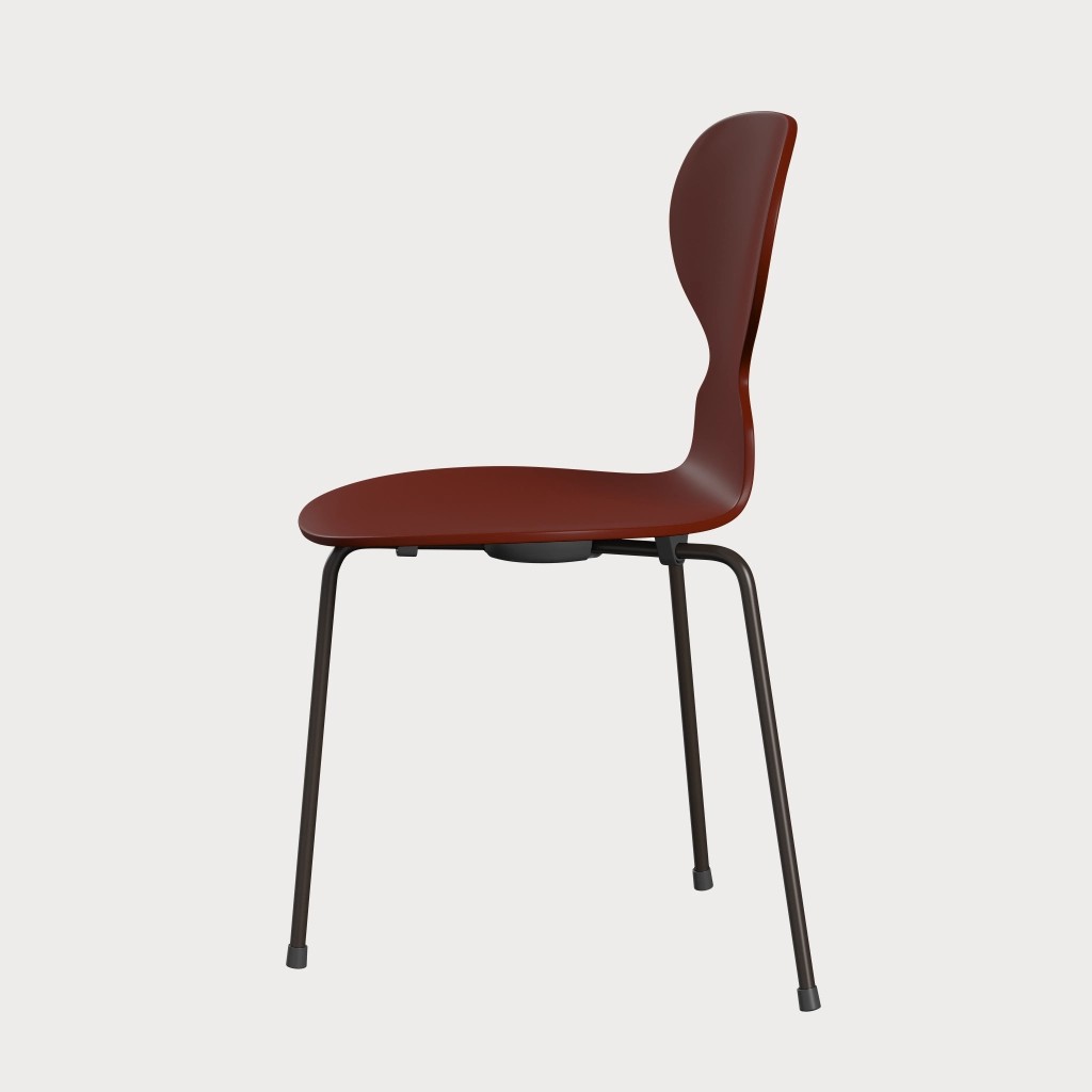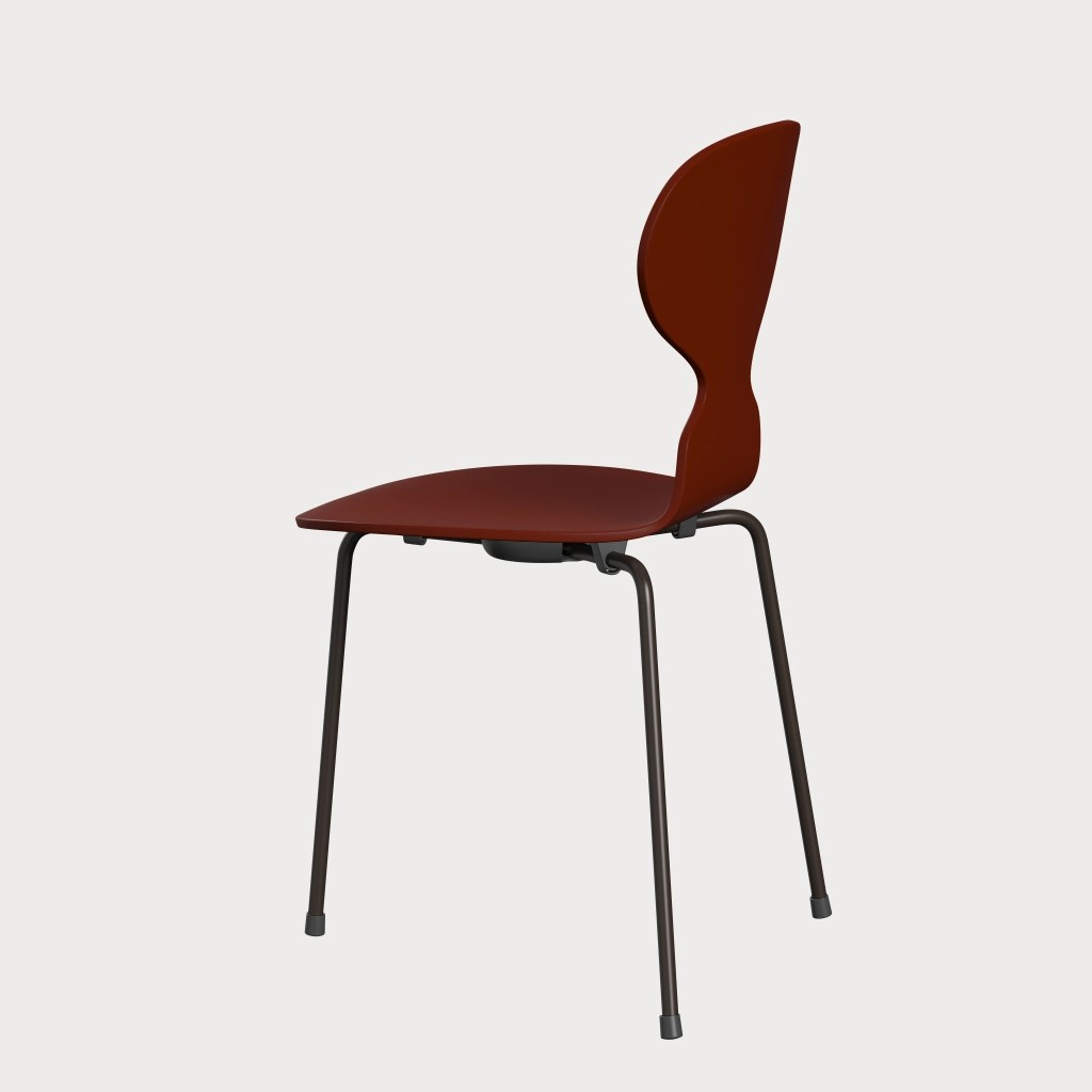 蚂蚁™椅子的视觉表达是细腻和巧妙的,很像乐器的曲线。这把椅子由阿恩·雅各布森于1952年设计,由九层压力模制贴面制成。其优雅的造型掩盖了其非凡的力量和舒适性。三条腿的蚂蚁的灵感来自于简单的农业凳子,这些凳子可以牢牢地站立在丹麦农舍不平坦的地板上。椅子精美地体现了雅各布森对原材料固有强度的理解,仅由两部分组成:组合座椅和靠背的形压胶合板和管状钢架。