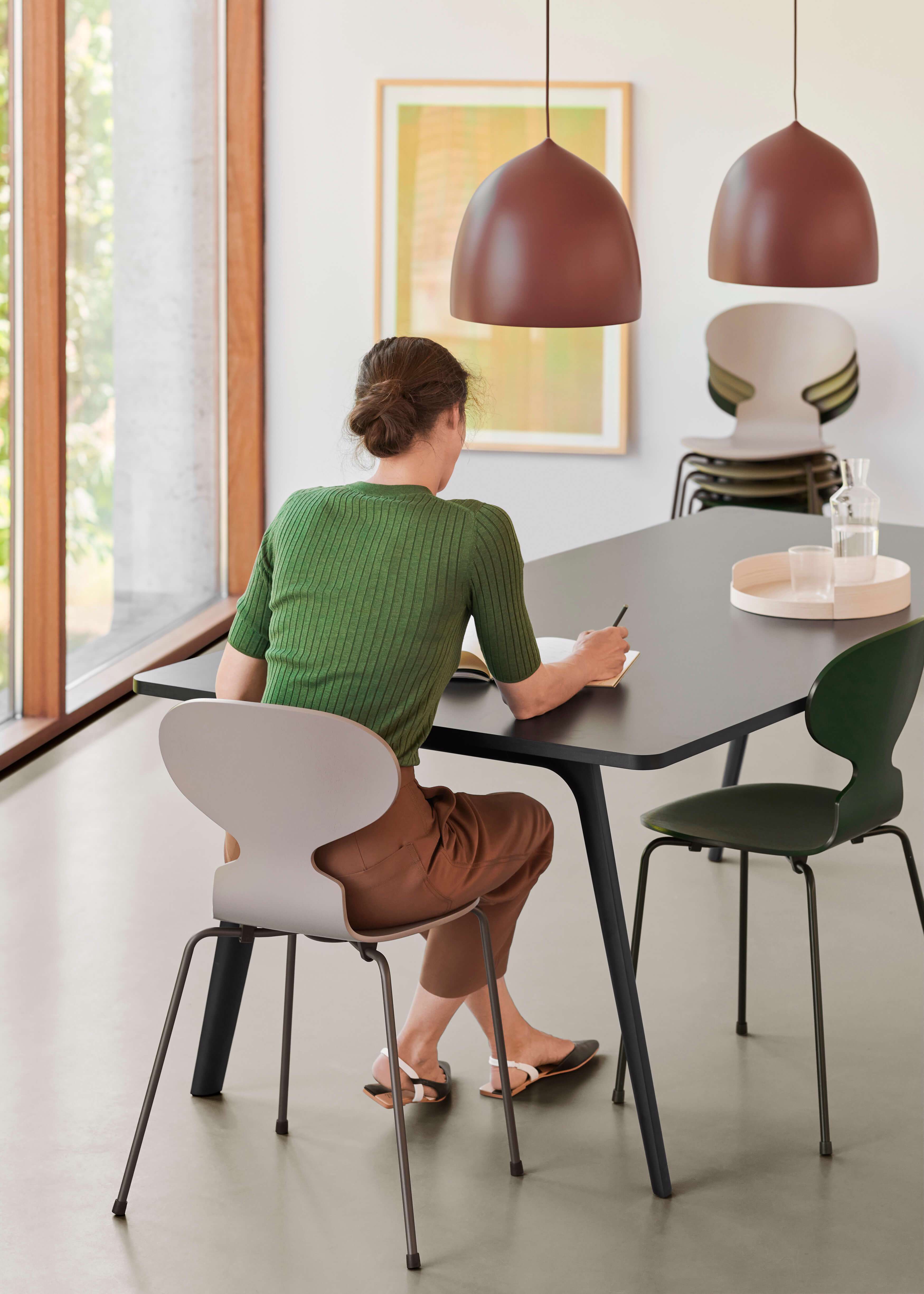 蚂蚁™椅子的视觉表达是细腻和巧妙的,很像乐器的曲线。这把椅子由阿恩·雅各布森于1952年设计,由九层压力模制贴面制成。其优雅的造型掩盖了其非凡的力量和舒适性。3101 模型保留了原始三条腿蚂蚁设计的雕塑简单性,同时扩展了其独特的、富有表现力的轮廓,以适应无数的内部设置。虽然四条腿版本的蚂蚁椅偶尔在雅各布森的有生之年生产,但它直到1971年才正式投入生产。