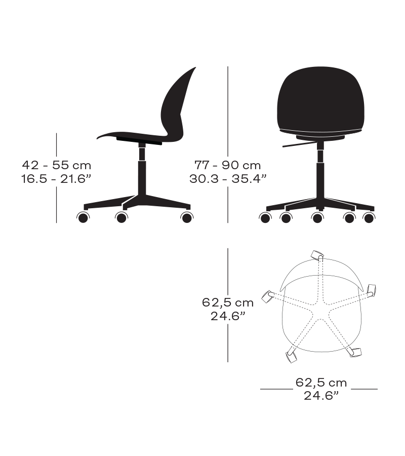 N02™回收是一种多用途的椅子,由回收塑料生活垃圾制成,可以再次回收利用。椅子背面的折痕灵感来自设计师工作室桌上的一张折叠纸,并为上背部和下背部提供额外的支持。七种颜色选项的灵感来自斯堪的纳维亚自然,以及多个基本选项,使 N02 回收特别适用于工作、会议和餐饮安排。N02-30 具有高度可调、五角星基座和耐用的双轮脚轮脚轮,在设计上提供耐用的旋转椅解决方案。