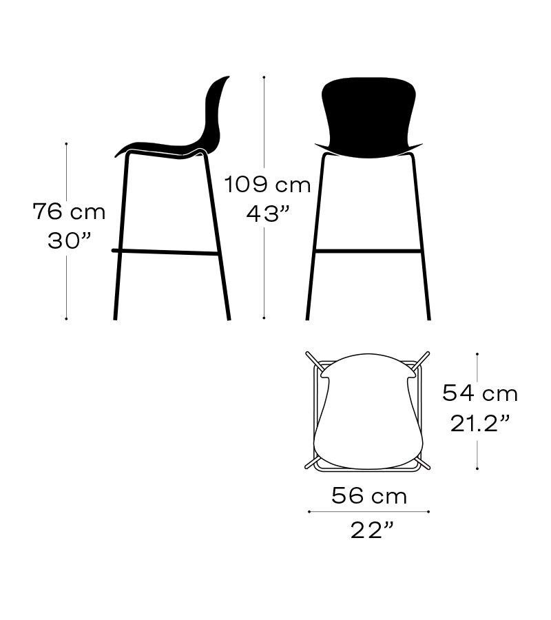 标志性的NAP™椅采用优雅、弯曲的造型。尼龙壳的轮廓自然适应人体的形状和纹理波使几个小时的坐姿成为极好的体验 - 无论位置如何。它具有高光泽背和波纹哑光正面,以强调椅子的动态设计。NAP 座椅是"正常、主动、被动"的首字母缩略词,可容纳多个座位位置。NAP KS59 的脊座和靠背从贝壳对比表面汲取灵感,旨在实现最佳通风和舒适,而座椅则与 Fritz Hansen 的 DNA 保持紧密联系,使用钢管支撑腿部,从而打造出优雅的酒吧凳子。