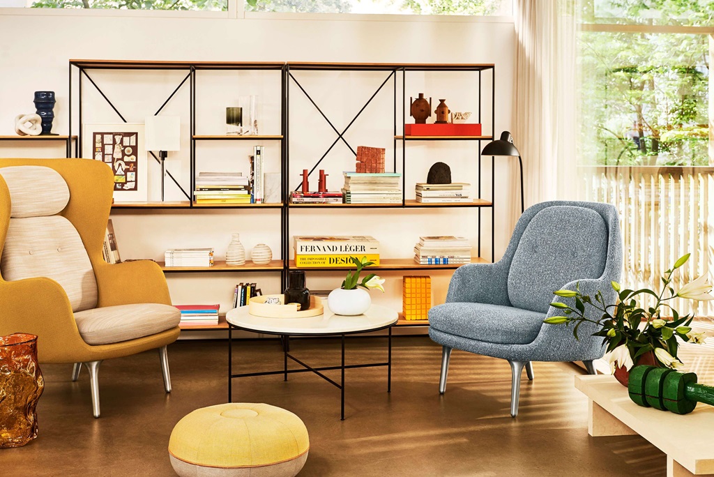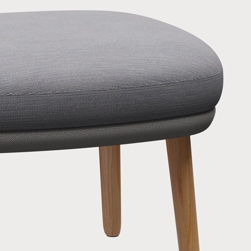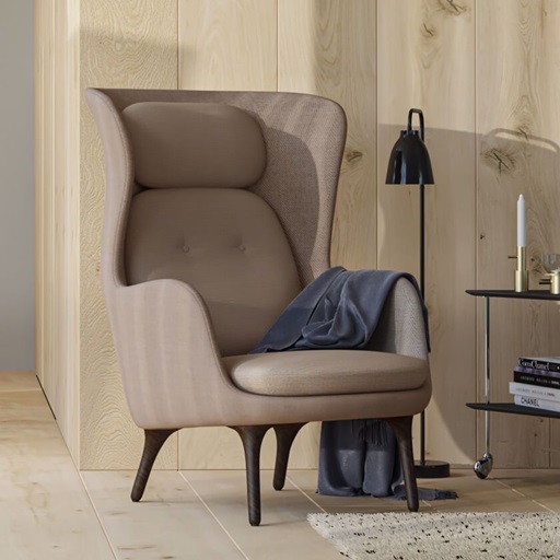 Ro™躺椅以丹麦语"宁静"一词命名。由海梅·哈永设计,轻松的椅子创造放松和反思的空间,吸引你沉浸在曲线中,为自己花点时间。底座由刷铝或实心橡木制成,漆面清晰。JH12 脚凳的特点是与 JH2 相同的实心橡木腿,其细腻圆润的点,像完美稳重的芭蕾鞋牢牢地平衡在地板上。