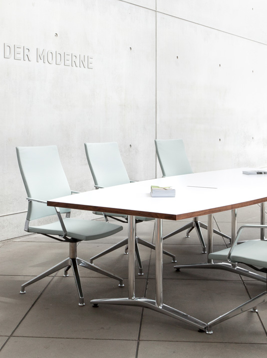 安装在底座上的两根腿管为腿部提供了清晰、设计精美的外观。不同的 T 腿版本的丰富性,加上产品系列 A 1700 Evo 提供的众多平板电脑之一,保证了在选择个性化桌面系统时的高度个性化。A 1700 Evo 的 T 腿版本安装在桌面的中心,也保证了充足的腿部空间。
