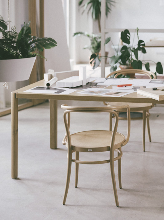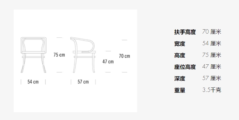 这个优雅的弯曲木经典是其建设和生产的杰作:投影框架,形成背背和扶手弯曲成它的形式从一块实心山毛虫木材。像所有弯曲木椅的原始模型一样,214号椅子、209号椅子也只由六个部分组成。由于它的审美减少与有机形式相结合,它几乎看起来像一个雕塑。瑞士建筑师勒·科布西耶着迷于它,并把它用于他的许多建筑,例如1927年在斯图加特的魏森霍夫庄园。他曾经说过这把椅子"具有贵族性"。