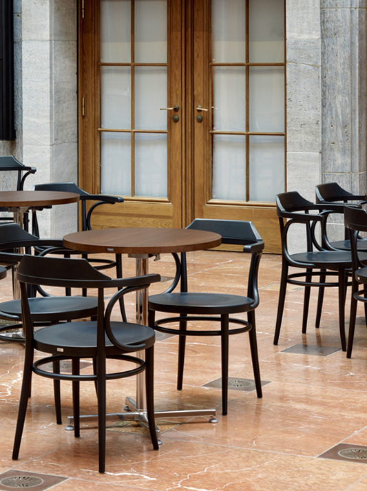 众所周知和信任,这个弯曲的木经典揭示了它的独特性,在第二眼:扶手是和谐地集成到扩展的靠背:两个弯曲的弯曲木元素将扶手与座椅连接起来。它们提供稳定性,同时提供一定的灵活性,使坐在这把椅子上非常舒适。正因如此,自 1900 年左右以来,它已在世界各地的许多餐馆和咖啡馆中使用。我们生产经验证的托纳特品质的原装产品。
