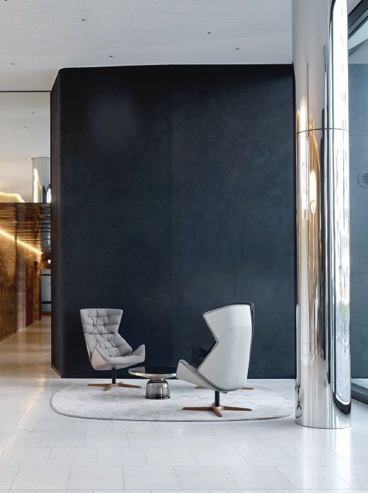 凭借 808 系列,慕尼黑设计工作室 Formstelle 打造了一款躺椅,将最大的舒适度与众多个性化可能性相结合。躺椅 808 与保护壳和诱人的开放性形成鲜明对比,营造出一种撤退和平静的地方。其独特的外观是通过当代对经典翼椅的重新诠释而创造的 - 形状暗示着一个优雅的蚕,拥抱坐在椅子上的人,传达一种安全感。另一个引人注目的特点是舒适的室内装潢,其欢迎软波效果。这种内缓冲核心与外壳的角形成耐人寻味的对比。巧妙的机制允许用户单独调整椅子的位置。紧凑型躺椅 809 是成功躺椅 808 的"小兄弟",是小型客房或团体的休憩场所,与较大的椅子或低边桌子 1808 和 1809 相结合。脚凳在射程外转了一圈。