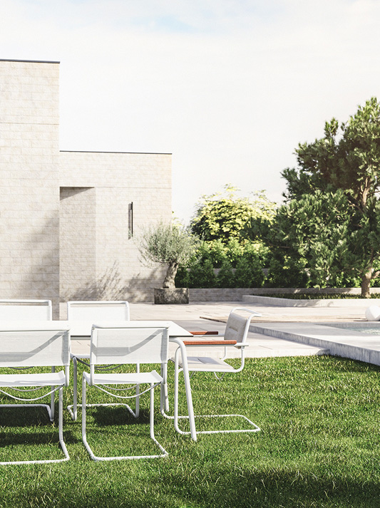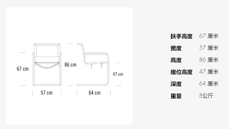 立方形、清晰的设计、精细的比例和弯曲的运动:完美的悬臂椅S 33和S34的开发,在当今同类中首创,结合了时代精神和传统感。艺术家库尔特·施维特斯在1927年看到家具史上第一把悬臂椅后写道:"如果两条腿足够的话,为什么四条腿就够了?S 33 和 S 34 两把椅子在斯图加特魏森霍夫庄园的韦克本德展览上引起了轰动。从1925年开始,Mart Stam试验了小直径的煤气管道,起初他用水管工使用的标准管道配件连接起来。作为进一步发展,Stam 创造了不再四条腿站立的悬臂椅,它是一种建筑原则,在现代家具设计史上以其形式约束成为重要的建筑块。他的悬臂椅S33和S34是非事实设计的室内设计对象:他们是建筑和生活新态度的整体革命概念的一部分。