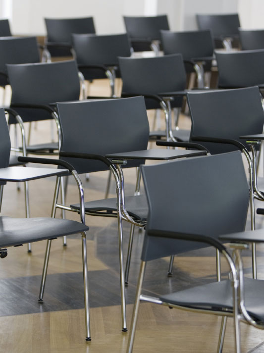 这些椅子被数千人使用,并在最恶劣的条件下成功测试,可以在交易会大厅、活动大厅、博物馆、教堂、市政厅和自助餐厅找到。它们满足了大众座位的所有要求:它们可以堆叠,易于连接,易于照顾,非常舒适。巧妙的行连接机制(托网专利)是一个特别有用的功能。框架可以连接,无需任何额外的部件。该系统具有两个经济优势:舒适的椅子宽度为58厘米,行间距要求仅为53厘米。这使得更多的椅子被放置在表面上,处理椅子是如此简单,组装和拆解时间明显减少。