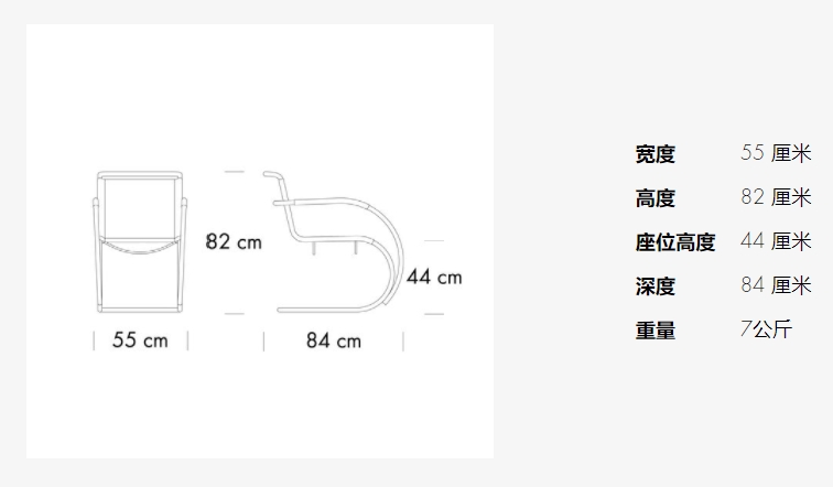技术变成家具:一项引人注目的发明成为优雅的室内设计对象。路德维希·米斯·范德罗赫是第一个为悬臂椅提供美感轻盈,并将其与弯曲线条的环境联系起来的人。在他组织的魏森霍夫庄园展览的运行前,米斯·范德罗赫熟悉了悬臂椅的原则,这要归功于马特·斯塔姆。尽管这种方法可能很新,但米斯·范德罗赫对斯塔姆的首次实施并没有留下深刻的印象。他立即用他自己的审美解决方案回答了技术创新问题,他于1927年提出了这一解决方案。S 533 是最早的悬臂椅之一,它以其大而优雅的弧形管状钢结构定义了周围的环境。S 533 的特点是有意限制所用材料、线条的优雅性和效果的透明度。它之所以特别舒适,是因为它能够通过弯曲不断调整到位置。虽然大多数20世纪20年代初的设计都强调功能方面,强调简单,但这款扶手椅带有建筑师的特色感:Mies van der Rohe 的奢华设计结合了功能、舒适性和永恒的美学。S 533 代表对质量的改变看法。