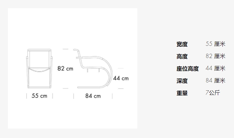 技术变成家具:一项引人注目的发明成为优雅的室内设计对象。路德维希·米斯·范德罗赫是第一个为悬臂椅提供美感轻盈,并将其与弯曲线条的环境联系起来的人。在他组织的魏森霍夫庄园展览的运行前,米斯·范德罗赫熟悉了悬臂椅的原则,这要归功于马特·斯塔姆。尽管这种方法可能很新,但米斯·范德罗赫对斯塔姆的首次实施并没有留下深刻的印象。他立即用他自己的审美解决方案回答了技术创新问题,他于1927年提出了这一解决方案。S 533 是最早的悬臂椅之一,它以其大而优雅的弧形管状钢结构定义了周围的环境。S 533 的特点是有意限制所用材料、线条的优雅性和效果的透明度。它之所以特别舒适,是因为它能够通过弯曲不断调整到位置。虽然大多数20世纪20年代初的设计都强调功能方面,强调简单,但这款扶手椅带有建筑师的特色感:Mies van der Rohe 的奢华设计结合了功能、舒适性和永恒的美学。S 533 代表对质量的改变看法。