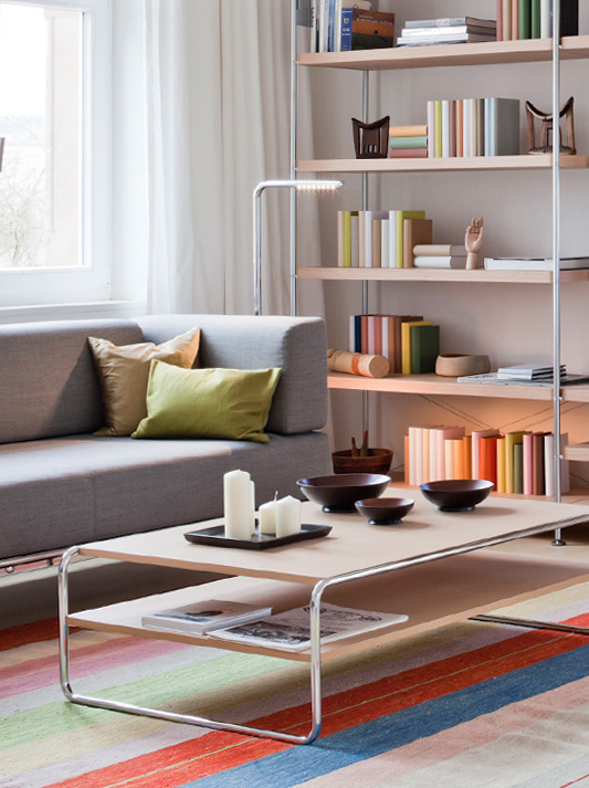 正式保留和比例良好:沙发桌的灵感来自包豪斯时期20世纪20年代和30年代的经典管状钢制家具。表线清晰,和谐比例高,与各种环境和室内设计风格非常契合。该系列提供各种版本和尺寸,方形或矩形,和额外的货架作为各种餐具的实际存储。