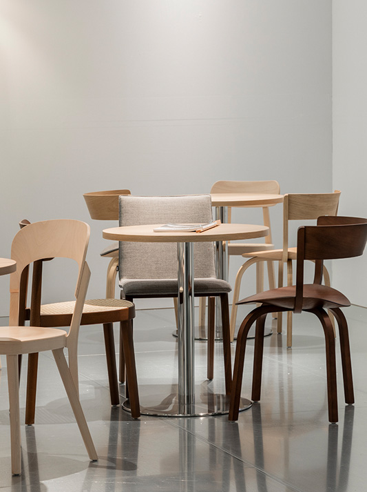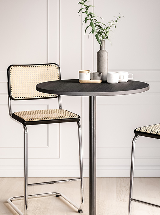 詹姆斯欧文已经开发了表,以配合酒吧凳S 123。它们是正式保留的,坚固的,易于照顾的, 因此非常适合合同部分。它们具有不同的高度、桌面形状和表面版本,适合任何环境。
