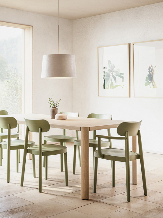 简约和诚实,同时优雅和精细:118椅子是一个经典的木椅,增加了微妙的优雅,任何餐桌或餐厅。迈克尔·托内特在19世纪中叶提出了将椅子减少到尽可能少的原则。118椅子是这一原则的延续,在向公司的传统点头后,它又向前迈进了一步。塞巴斯蒂安·赫克纳增加了复杂的细节,这使得设计不那么占主导地位,因此更加突出。椅子腿的形状是另一个特殊特征:在外侧圆润,在内侧直线 - 一个暗示座椅表面的马蹄形的设计。弯曲的木制座椅框架和手工制作的座椅覆盖着甘蔗,指的是 214,Thonet 椅子的原型。