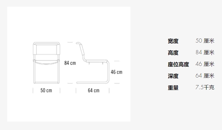 立方形、清晰的设计、精细的比例和弯曲的运动:完美的悬臂椅S 33和S34的开发,在当今同类中首创,结合了时代精神和传统感。艺术家库尔特·施维特斯在1927年看到家具史上第一把悬臂椅后写道:"如果两条腿足够的话,为什么四条腿就够了?S 33 和 S 34 两把椅子在斯图加特魏森霍夫庄园的韦克本德展览上引起了轰动。从1925年开始,Mart Stam试验了小直径的煤气管道,起初他用水管工使用的标准管道配件连接起来。作为进一步发展,Stam 创造了不再四条腿站立的悬臂椅,它是一种建筑原则,在现代家具设计史上以其形式约束成为重要的建筑块。他的悬臂椅S33和S34是非事实设计的室内设计对象:他们是建筑和生活新态度的整体革命概念的一部分。