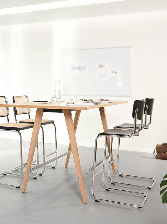 简单,展开其效果无处不在:马特·斯塔姆从家具中取出后腿,几个世纪以来,这些家具都是根据同样的原理创造的。通过进化的完善,一个在任何需要轻描淡写和质量的地方看起来都不错的对象。对于他的家具设计,Mart Stam 在美学和材料方面高度重视实用性和紧缩性。直线形式,清晰的结构和改善的坐姿舒适性,由于这种方法。Stam 通过将管状钢架与模制木材元素相结合,使座椅和靠背的悬臂椅 S 43 尽可能减少。这把悬臂椅的纯净、克制形式使其成为现代主义精神的典范设计。今天,Thonet 拥有没有后腿的严格立方椅的艺术版权。1933年,莱比锡德国国家图书馆自然科学阅览大厅配有悬臂椅S 43。70 多年后,Thonet 交付了更多 S 43 椅子,作为现有家具的补充。只有管状钢制家具的品质最高,就像Th奥内特的典型一样,才表现出这种耐用性和可持续性。在他的所有家具设计中,Mart Stam 依靠简单的形式、建筑手段的美学经济以及改善座椅舒适性的好处。在S 43的情况下,他结合管状钢框架与模制胶合板壳的座椅和背部,从而创造了一个绝对的减少。由于框架的舒适弯曲效果,室内装潢是不必要的。其清晰、保留的形式使这把悬臂椅成为现代主义精神的典范设计。今天,Thonet 拥有这个严格立方"没有后腿的椅子"的艺术版权。
