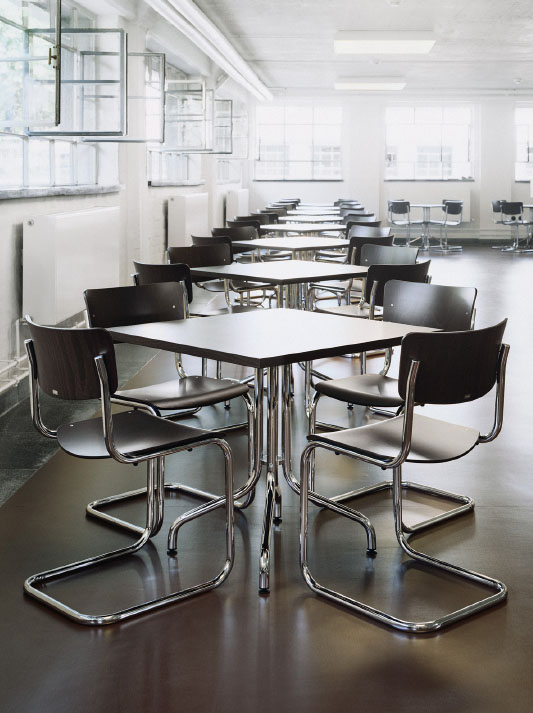 简单,展开其效果无处不在:马特·斯塔姆从家具中取出后腿,几个世纪以来,这些家具都是根据同样的原理创造的。通过进化的完善,一个在任何需要轻描淡写和质量的地方看起来都不错的对象。对于他的家具设计,Mart Stam 在美学和材料方面高度重视实用性和紧缩性。直线形式,清晰的结构和改善的坐姿舒适性,由于这种方法。Stam 通过将管状钢架与模制木材元素相结合,使座椅和靠背的悬臂椅 S 43 尽可能减少。这把悬臂椅的纯净、克制形式使其成为现代主义精神的典范设计。今天,Thonet 拥有没有后腿的严格立方椅的艺术版权。1933年,莱比锡德国国家图书馆自然科学阅览大厅配有悬臂椅S 43。70 多年后,Thonet 交付了更多 S 43 椅子,作为现有家具的补充。只有管状钢制家具的品质最高,就像Th奥内特的典型一样,才表现出这种耐用性和可持续性。在他的所有家具设计中,Mart Stam 依靠简单的形式、建筑手段的美学经济以及改善座椅舒适性的好处。在S 43的情况下,他结合管状钢框架与模制胶合板壳的座椅和背部,从而创造了一个绝对的减少。由于框架的舒适弯曲效果,室内装潢是不必要的。其清晰、保留的形式使这把悬臂椅成为现代主义精神的典范设计。今天,Thonet 拥有这个严格立方"没有后腿的椅子"的艺术版权。