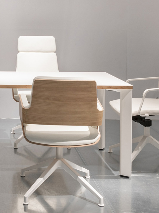 可以插入木材、皮革或其他材料,为餐桌系统提供符合任何会议或培训区域的视觉条件的个人外观。现代和优雅的弯曲:T腿