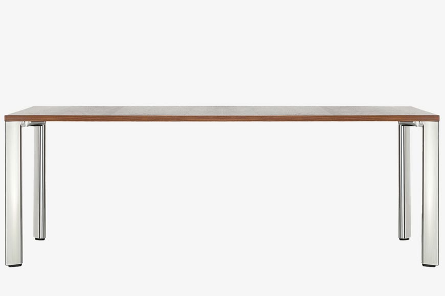 安装在桌面外缘的腿以其高贵的落差形状给人留下深刻印象,并呈现向外倾斜的细长边缘。