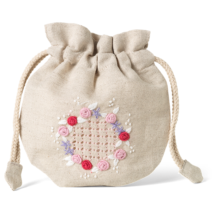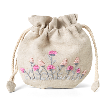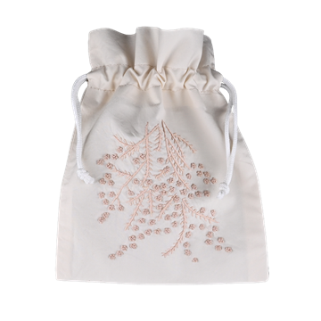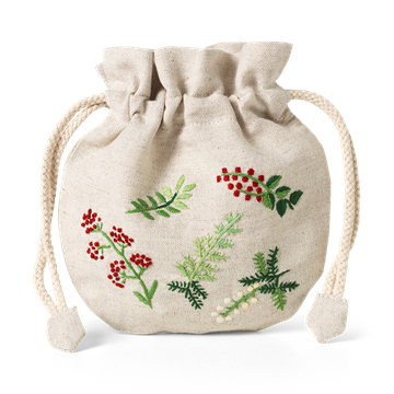 一个漂亮的小亚麻袋与手工绣图案。越南宁边省一家家族经营的刺绣公司为卡尔·汉森和儿子制作,在那里,这种工艺被学习和传承到下一代。