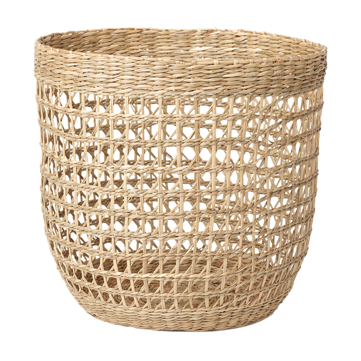 圆形篮子,手工制作在水葫芦与狐狸眼图案。+24x27 厘米。水葫芦是一种生长速度极快的植物。胡志明市一家家族企业在越南生产。