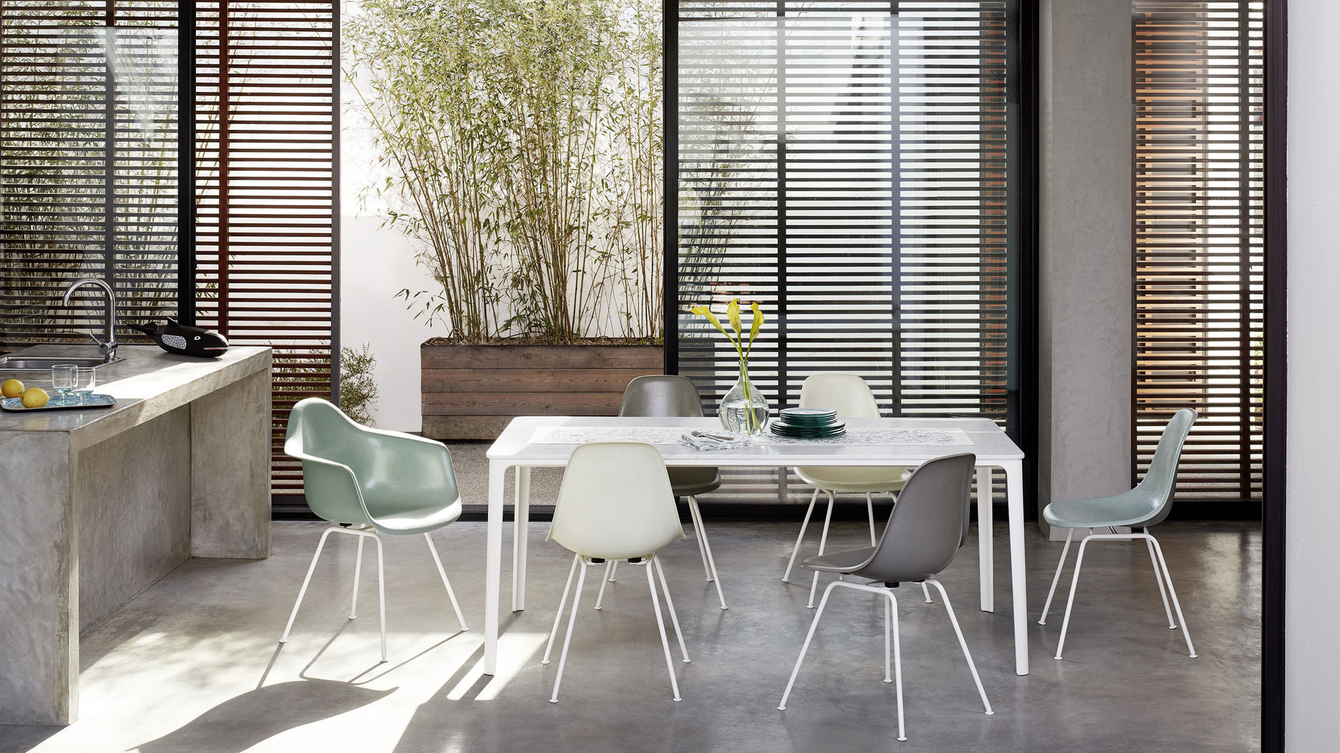 Dining Height Armchair X-Base (DAX) 及其四腿管状钢框架是 Charles 和 Ray Eames 经典的正式保留版本。可应要求提供的座垫可提供额外的舒适感。