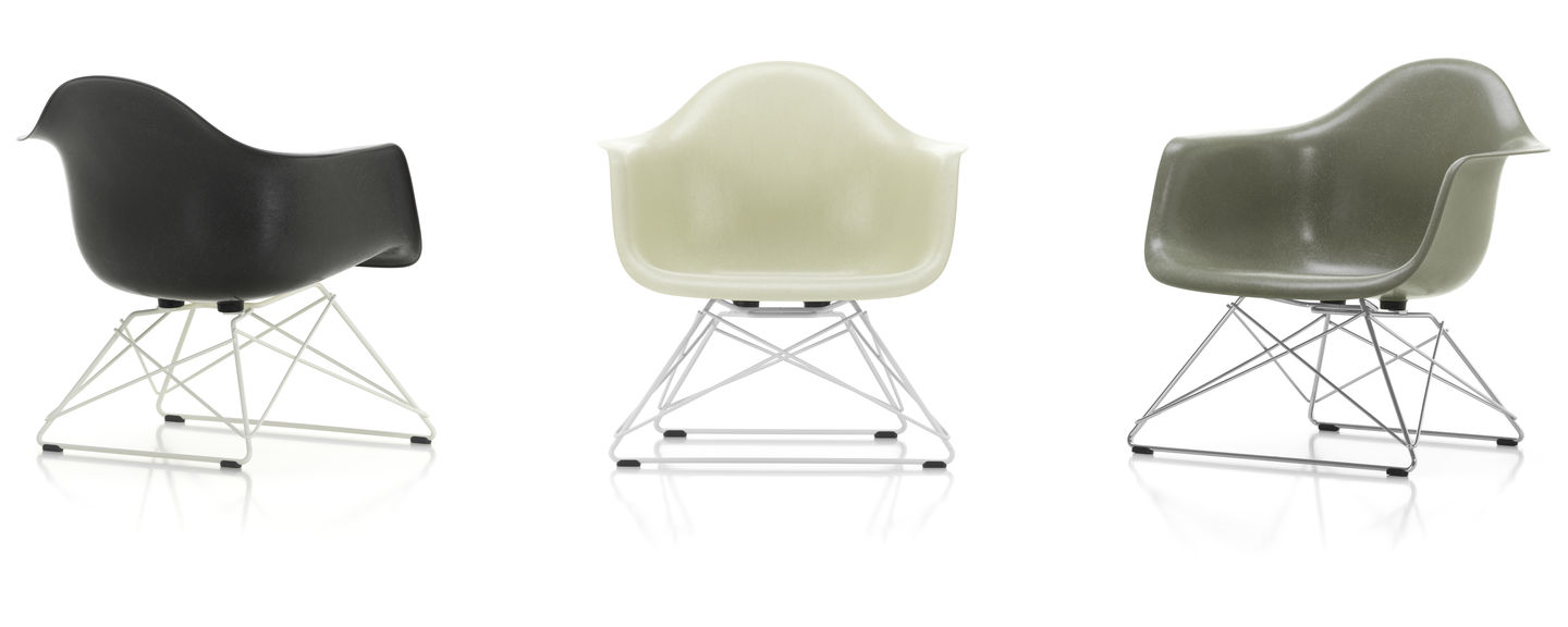凭借革命性的设计,Charles 和 Ray Eames 还创立了多功能椅,这是当今广泛使用的家具类型,其外壳可以与各种底座相结合。早在 1950 年,他们就推出了一系列适用于不同座椅位置的底座,包括低 LAR(Lounge Height Armchair Rod Base),其钢丝底座因其形状很快被昵称为“猫的摇篮”。