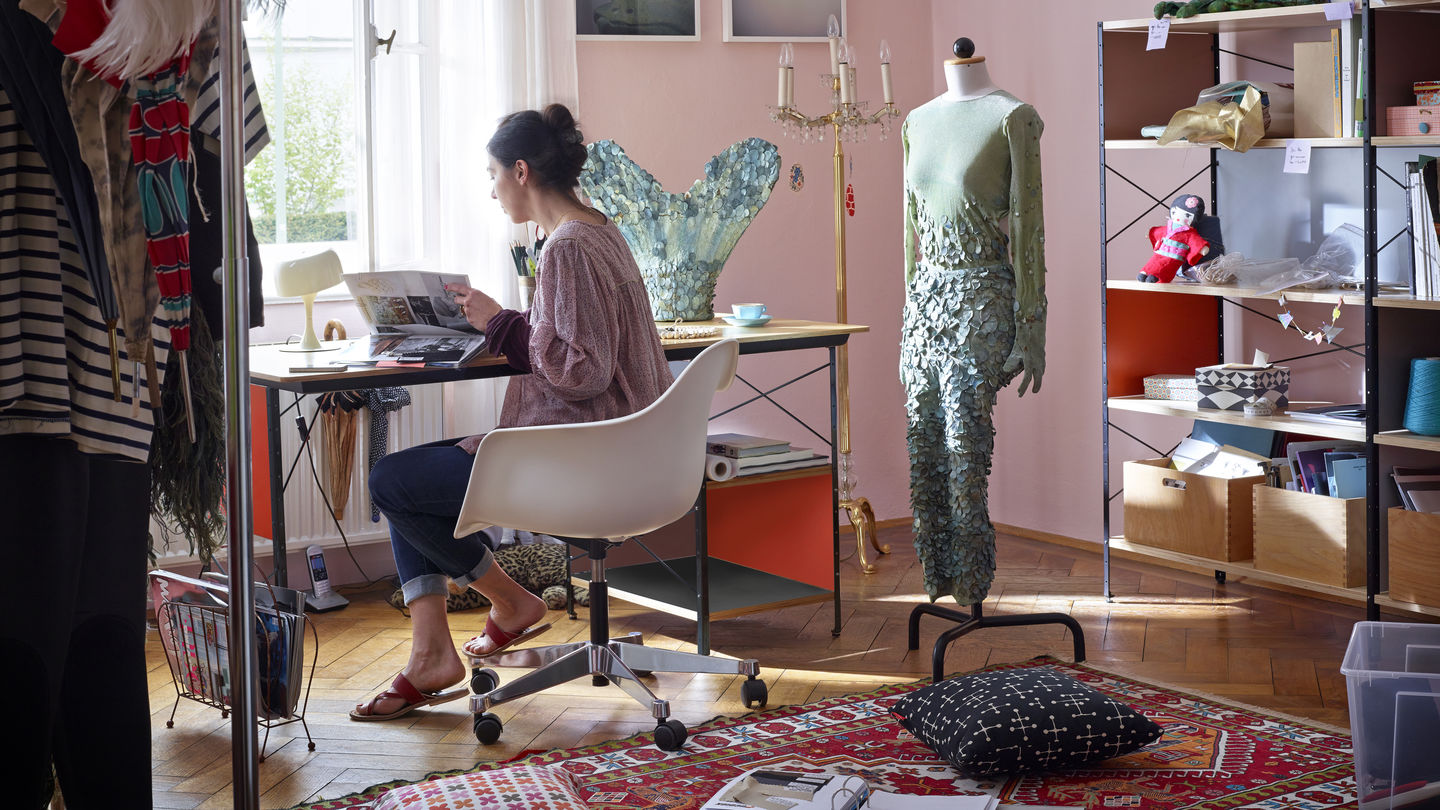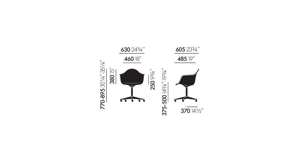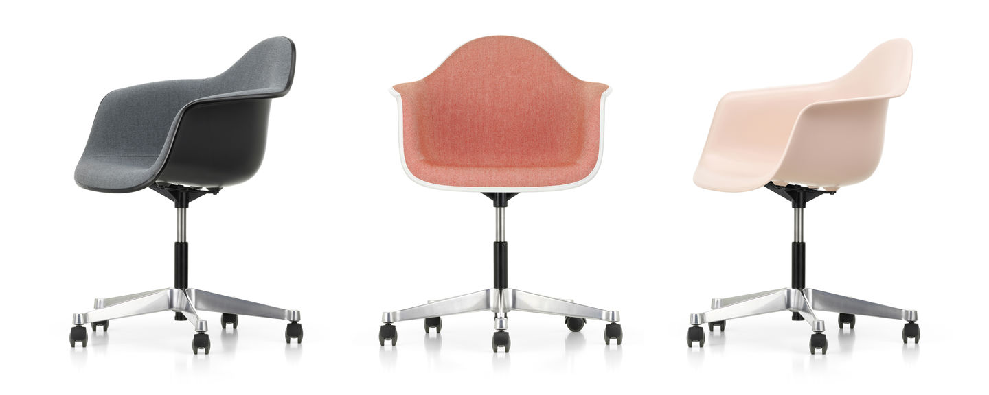由于有多种底座可供选择,Charles 和 Ray Eames 设计的塑料椅子可用于各种场合 - 例如带有可调节高度的旋转底座的 Pivot 扶手椅铸造底座 (PACC),非常适合适用于非正式办公区域和工作室办公室。颜色和室内装潢的变体使得为各种环境配置合适的椅子成为可能。