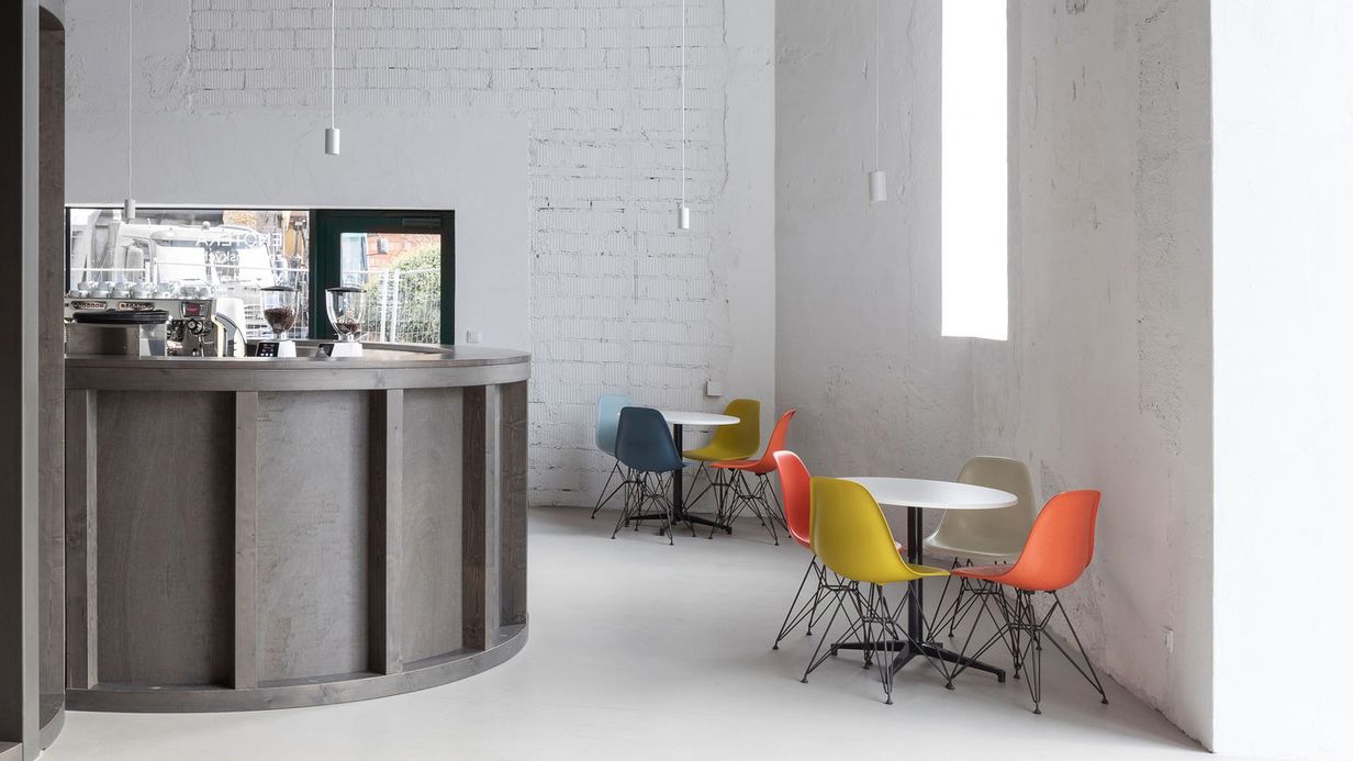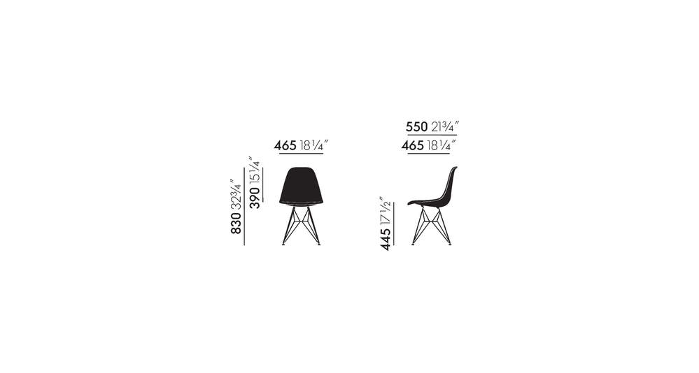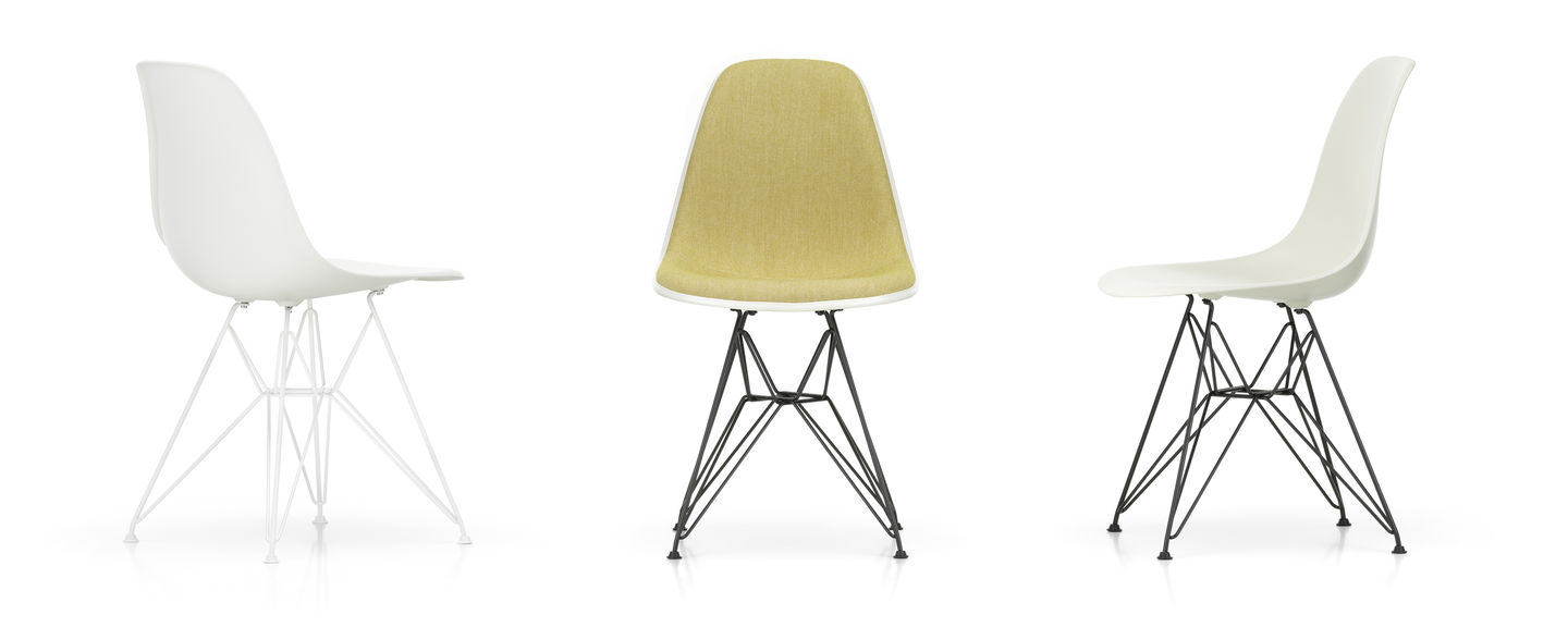 Dining Height Side Chair Rod Base (DSR) 的所谓埃菲尔铁塔框架是一种由钢丝制成的金银丝结构,结合了结构稳定性和形式上的轻盈性。有机塑料座椅外壳有不同的颜色和内饰可供选择,使 Charles 和 Ray Eames 的经典经典款能够适应个人需求和喜好。