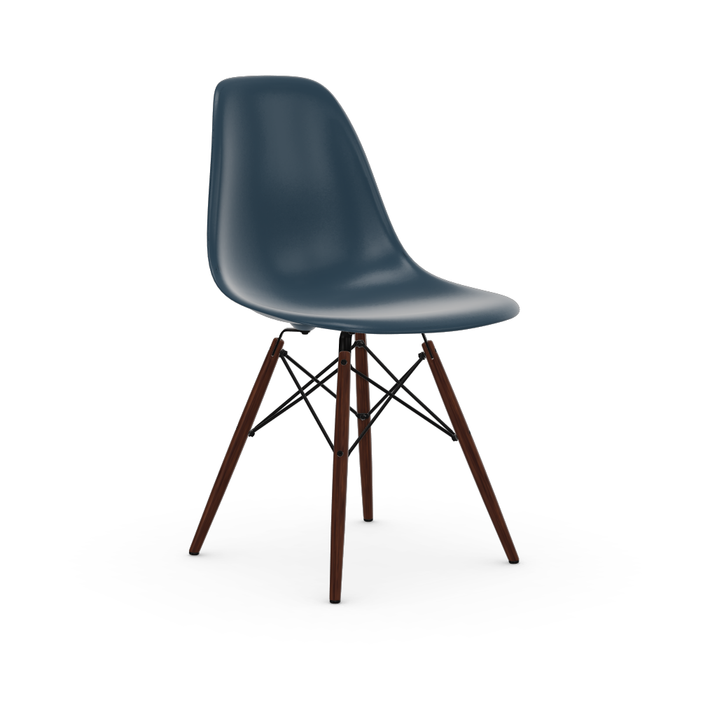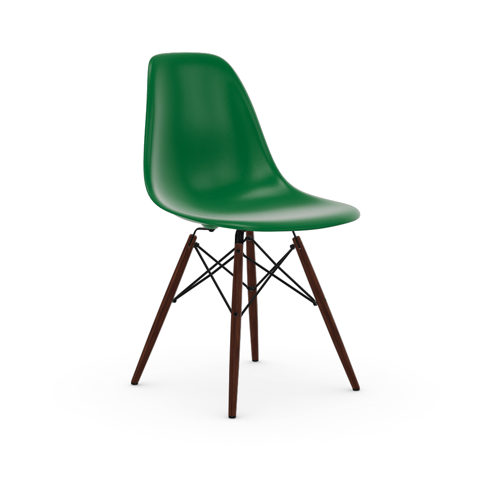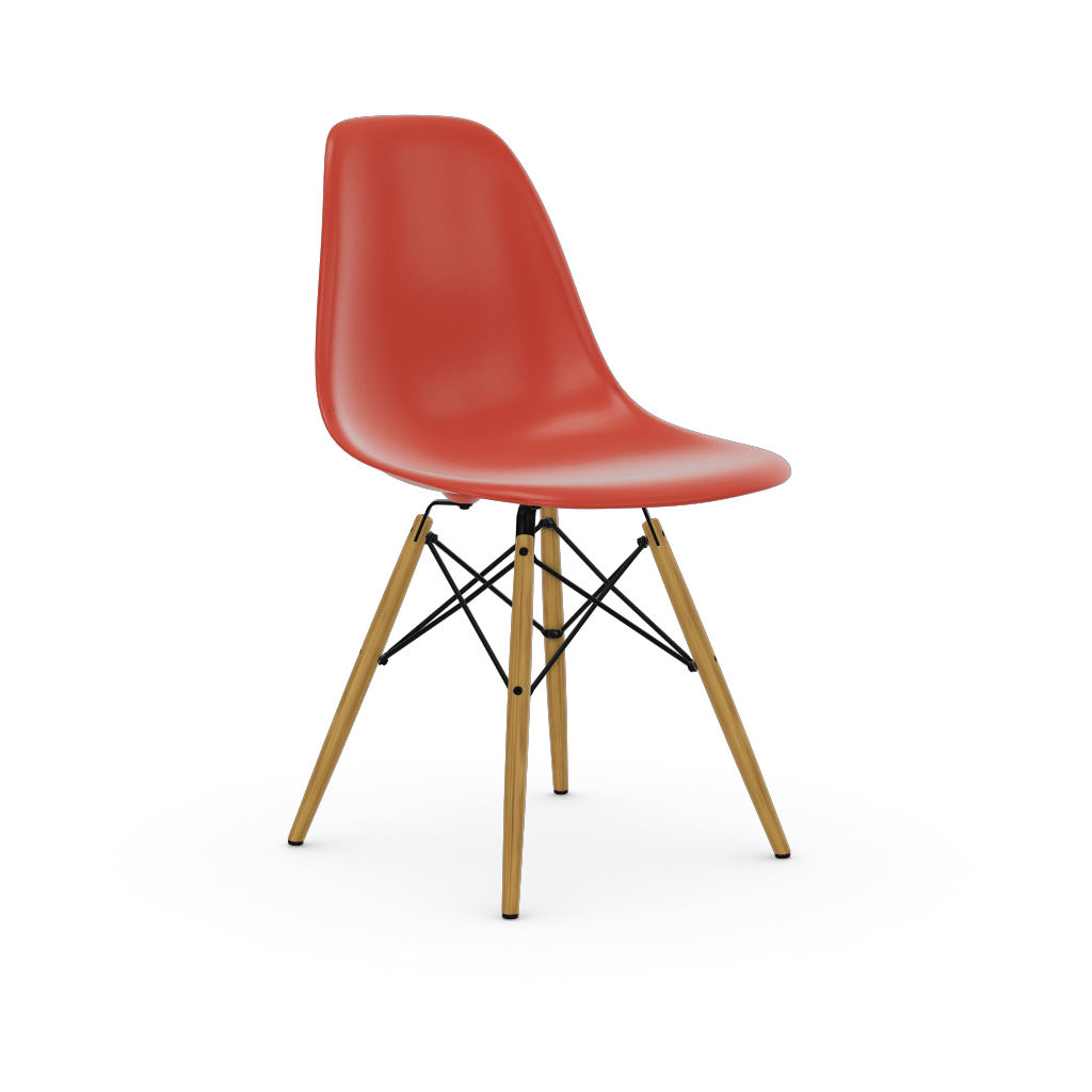 对于 Dining Height Side Chair Wood Base (DSW),Charles 和 Ray Eames 将有机座椅外壳与四脚木底座相结合。塑料和木材的结合为经典赋予了一定的温暖,特别是家常的感觉。座椅外壳可以配备座垫或完整的室内装潢,织物颜色的选择允许各种个性化配置。