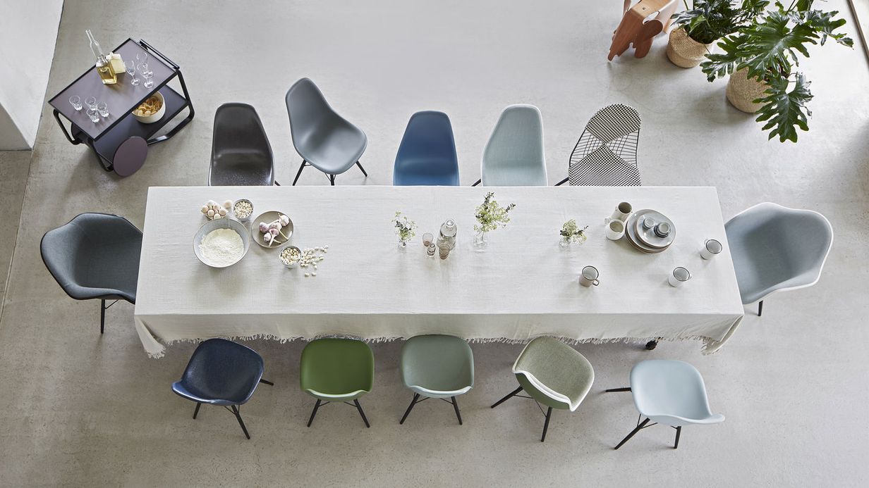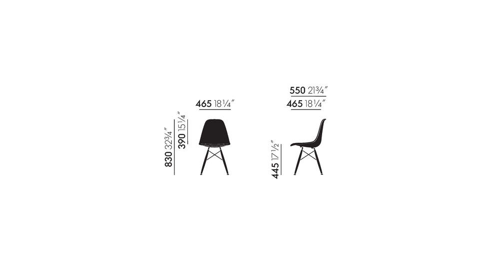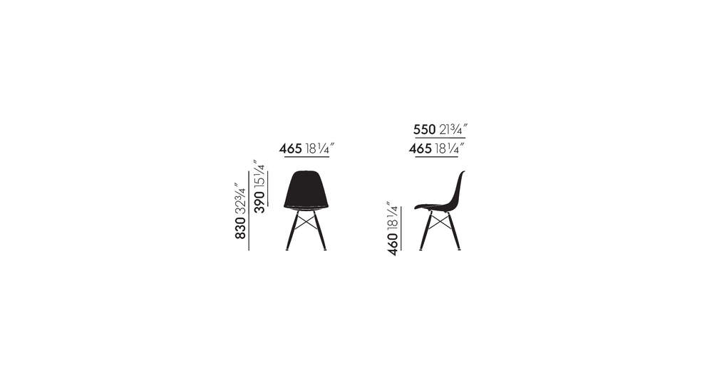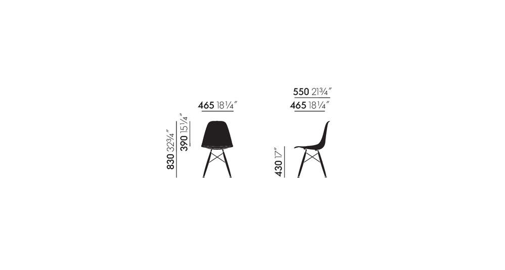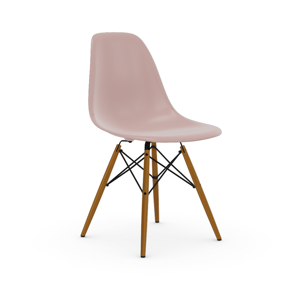 对于 Dining Height Side Chair Wood Base (DSW),Charles 和 Ray Eames 将有机座椅外壳与四脚木底座相结合。塑料和木材的结合为经典赋予了一定的温暖,特别是家常的感觉。座椅外壳可以配备座垫或完整的室内装潢,织物颜色的选择允许各种个性化配置。