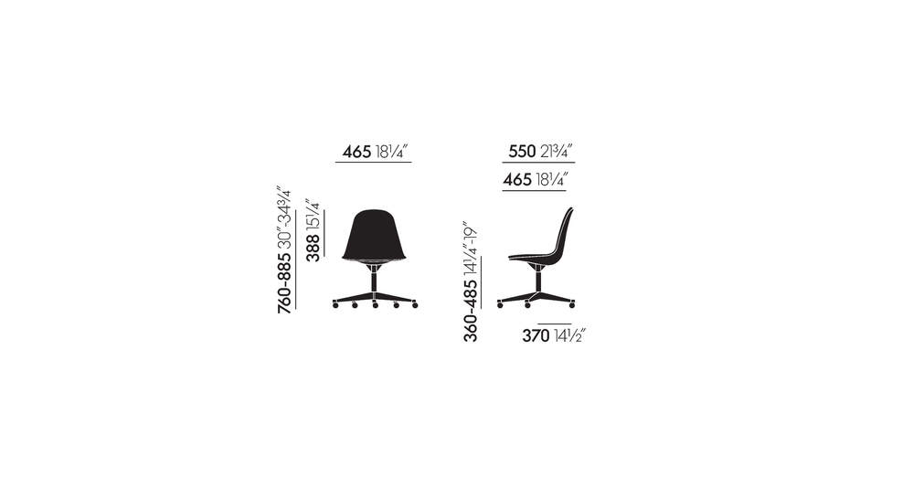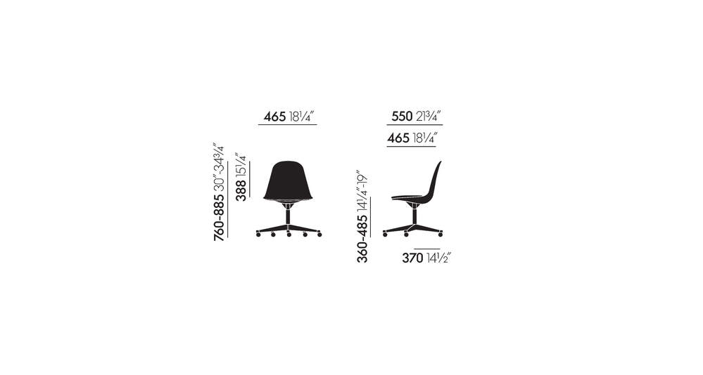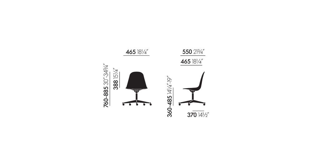 Charles 和 Ray Eames 为塑料椅子选择的底座确保可以找到适合各种位置和情况的正确型号。Pivot Side Chair Cast Base on Castors (PSCC) 是家庭办公室的理想选择。得益于带有舒适悬挂和高度调节功能的有机可旋转座椅外壳,它提供了令人愉悦的舒适感。