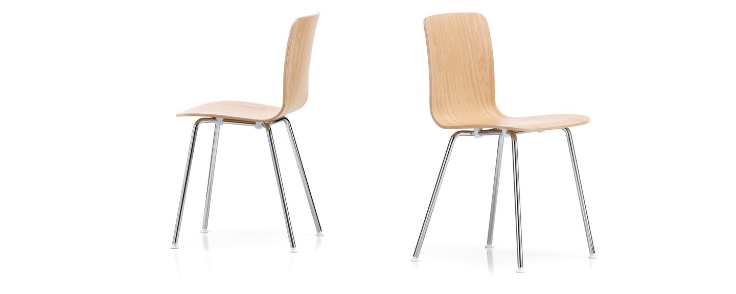 由胶合板制成的座椅外壳与由镀铬或粉末涂层钢管制成的受限四腿框架的组合使 HAL Ply Tube 成为 Jasper Morrison HAL 椅子系列中优雅且多功能的变体。