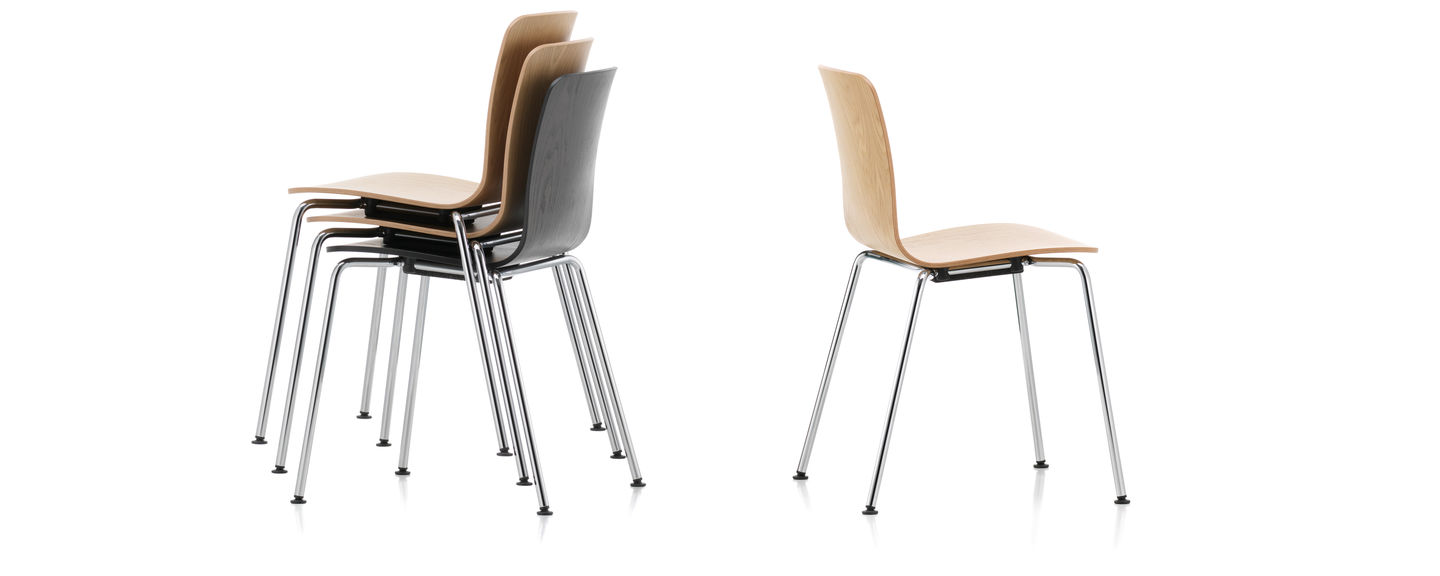 Jasper Morrison 的 HAL Ply Tube Stackable 非常适合需要优雅和高品质座椅的房间,但椅子必须不时堆叠和收起。座椅外壳有不同的木材可供选择。