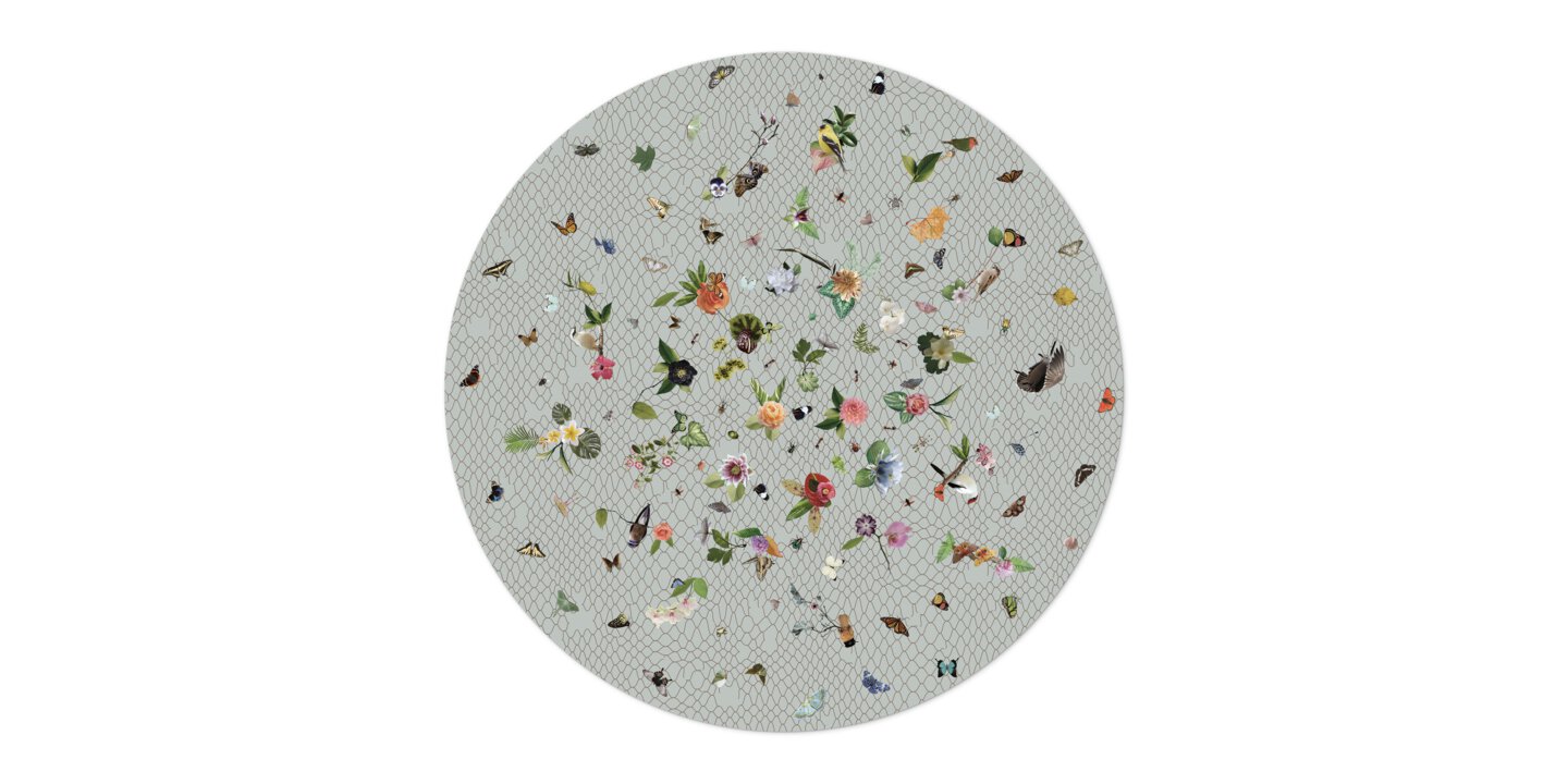 将大自然之美与爱德华·范·弗里特的伊甸园地毯一起带进来。柔和灰色背景的浪漫花、叶子、鸟和蝴蝶。这圆地毯给你的家带来了永恒的春天。
