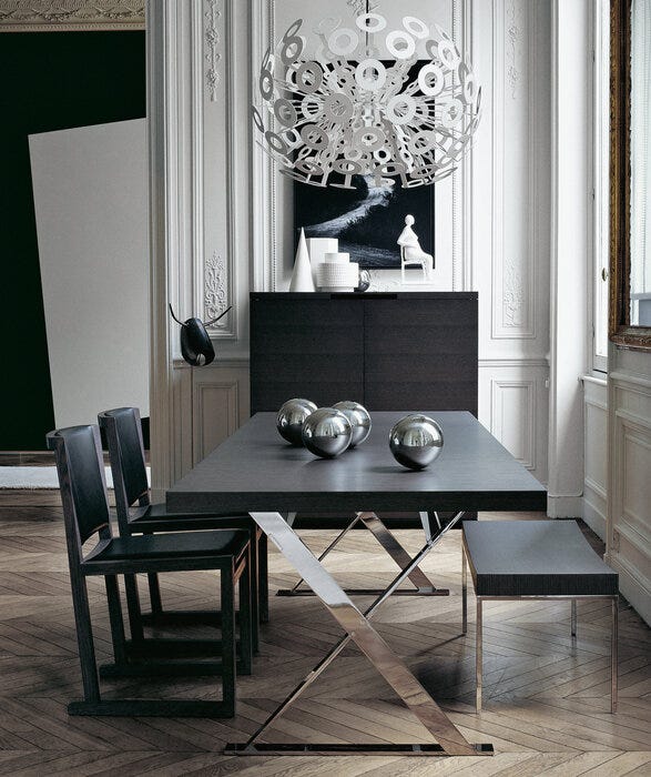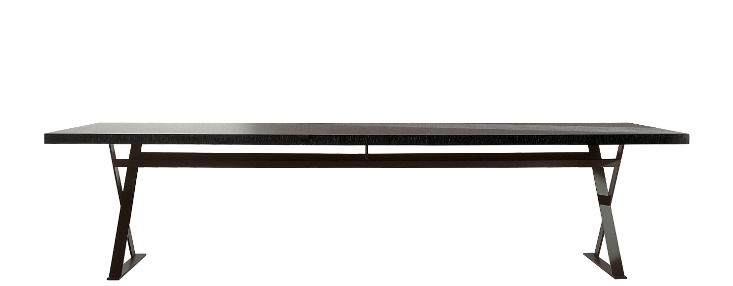 这张以优雅线条和强烈个性为标志的桌子是 Maxalto 系列的标志。它的显着元素是带有钢 X 形腿的支撑框架。顶部由木材制成,有多种颜色可供选择。