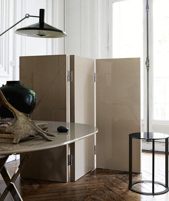 Arkè 优雅理性,是一款三板挡风玻璃,旨在将空间划分为独立的私人壁龛。它有多种饰面和多种配色方案。