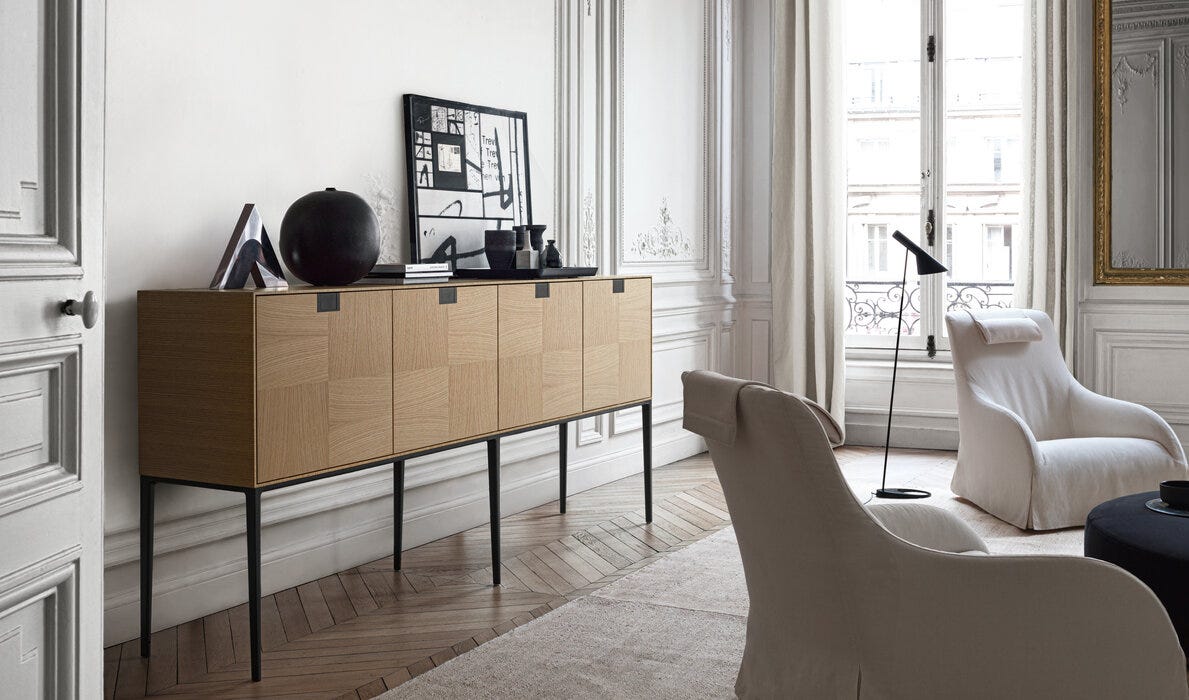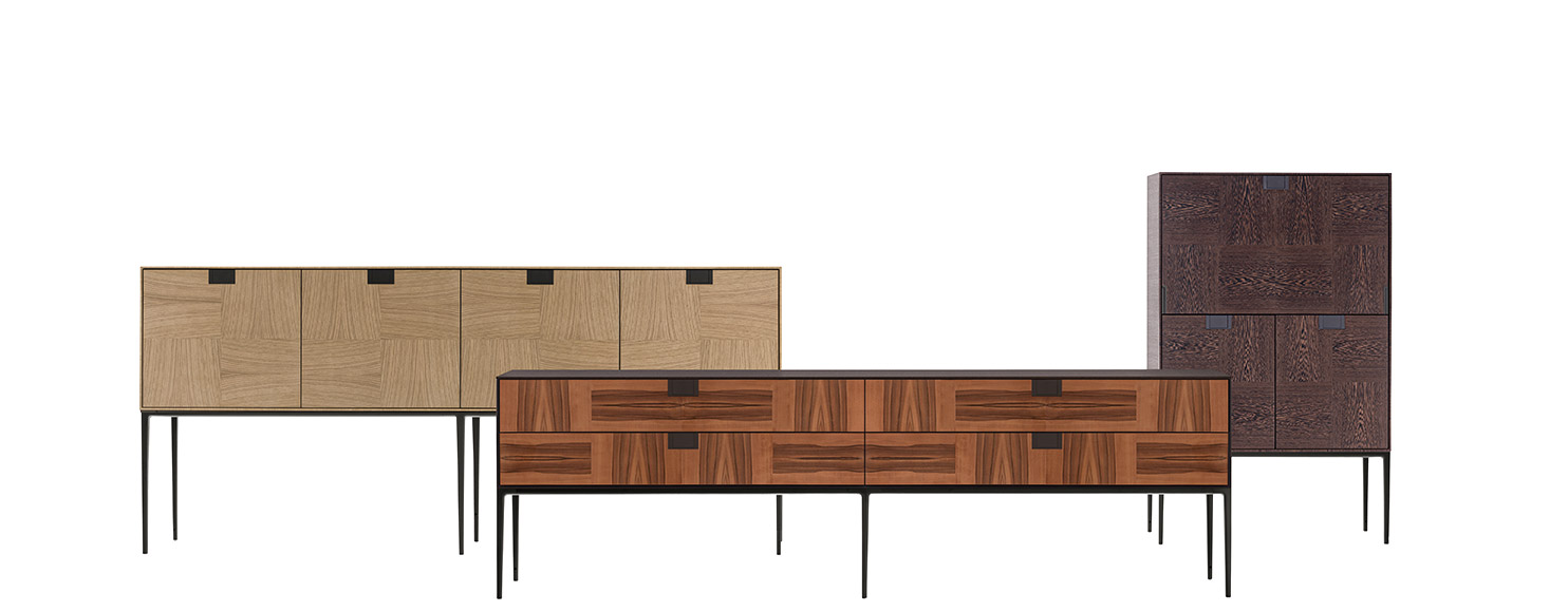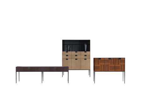Alcor 是一系列橱柜、餐具柜和控制台,以严谨的美学为特色,搭配珍贵的木材表面,体现了 Maxalto 工匠工艺的卓越。提供不同的配置、尺寸和高度,带有铰链门和翻盖门、抽屉和开放式隔间,这些作品具有镶嵌在各种木材中的 Damier 棋盘格图案,可供选择该系列中的各种饰面。表面的进一步处理使它们变得特别而珍贵,带有虫胶的颜色变化。后者与色彩相结合,让您联想到东方,但同时也是精湛工艺的体现。整个系列具有视觉上轻盈的结构,带有涂漆的铝制支架。
