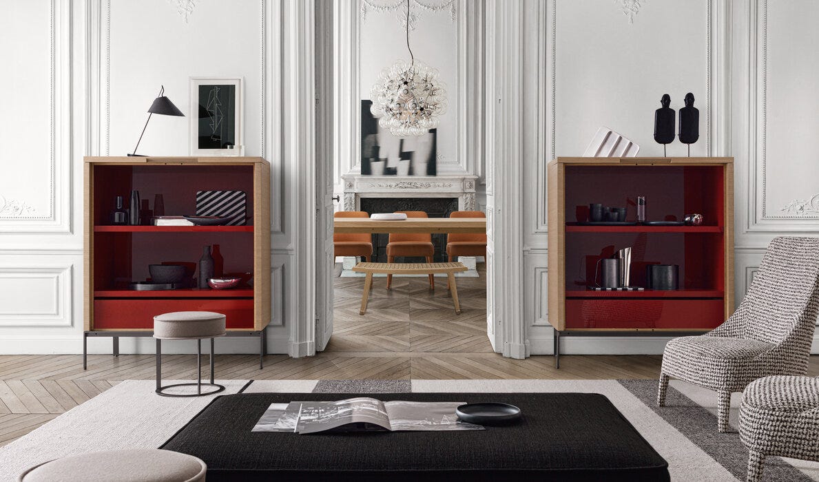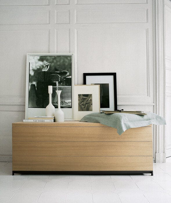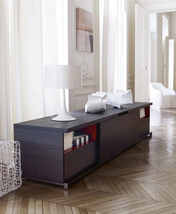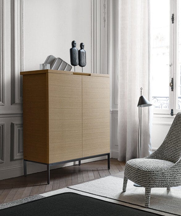 Mida 存储单元的共同点是钢型材底座,支持各种类型的存储单元:最小的有脚有两种高度,门可向外旋转 270° 和不同的内部设备;带有旋转门的低而长的餐具柜露出两个外部隔间或中央隔间;抽屉柜有两种尺寸可供选择。提供不同类型的木材,包括重现锯边手工工艺的切割,留下加工痕迹,为其永恒的优雅增添价值,这是 Maxalto 的一个显着特征。存储单元的内部框架采用木材或光面饰面。