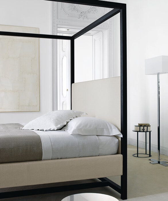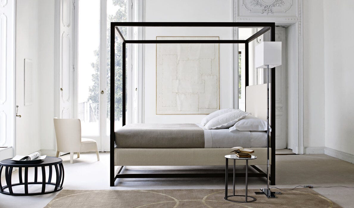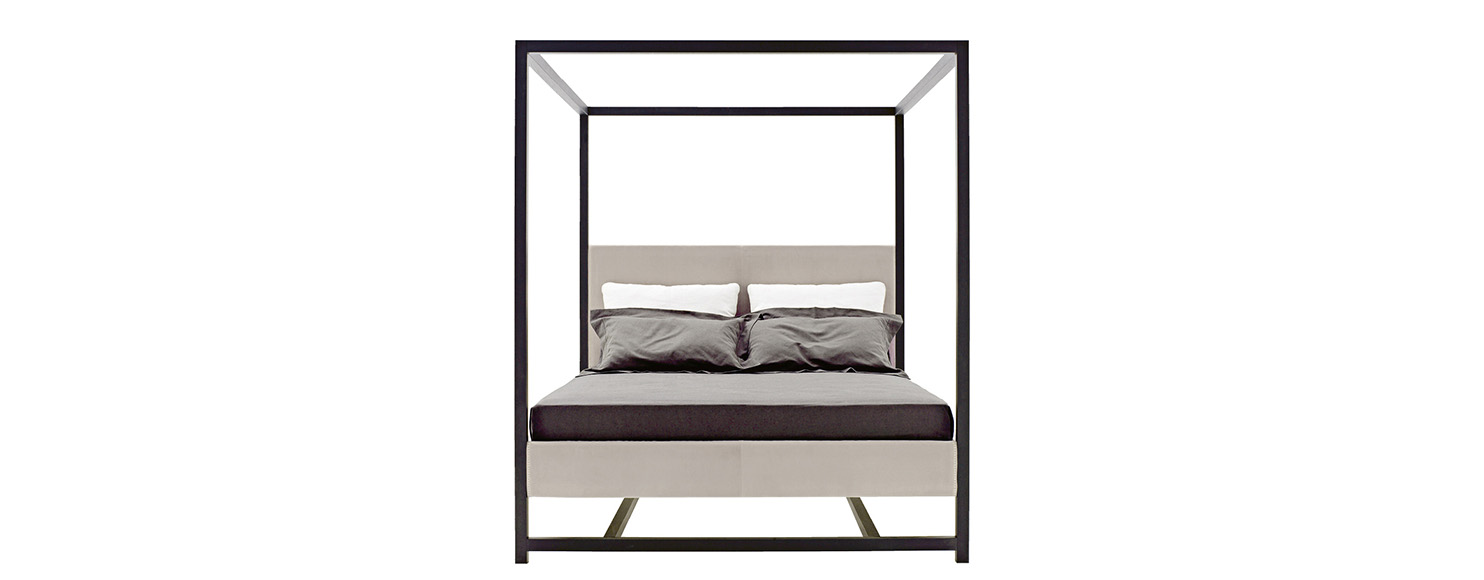 Alcova '09 经典天篷床采用现代诠释,适合放置在房间中间。床边和床头板采用皮革或织物制成,床放置在一个平台上,该平台足够大,可以在床脚处放置一个带有开放式隔间的服务元件。