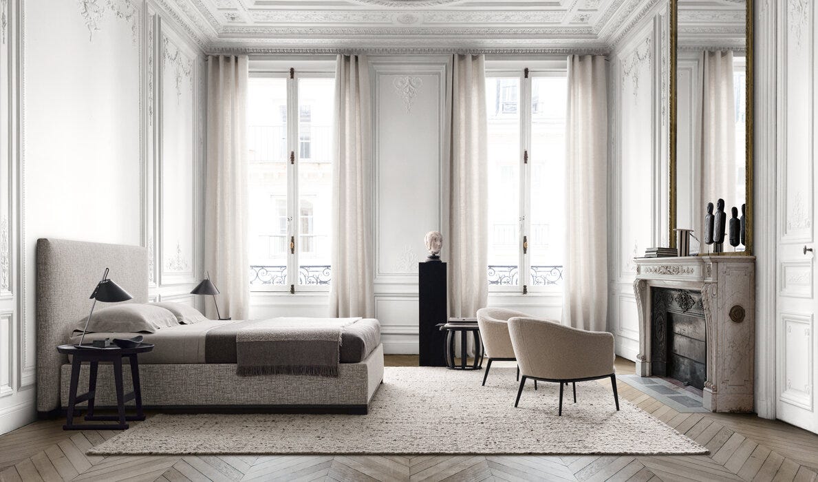Bauci 床配有可抬起的板条底座,下方有一个实用的隔间。下边缘采用涂漆钢。可在不同颜色之间进行选择的实木周边底座赋予了珍贵的细节。这张床可以与该系列中包含的所有床头板结合使用。