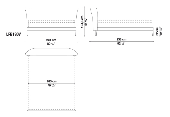 Febo 床有多种尺寸可供选择,带有优雅而温馨的床头板和两个靠垫。单一材质和精致的可见缝合是其显着特征。
