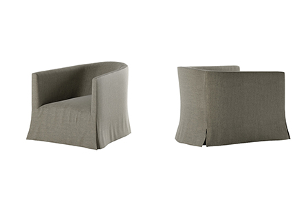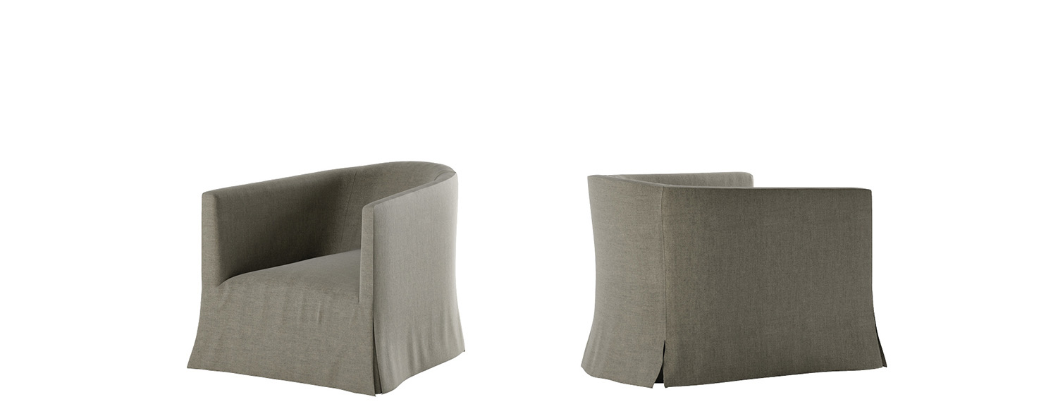 带旋转钢底座的曲线扶手椅,适用于从客厅到书房再到卧室的不同环境。